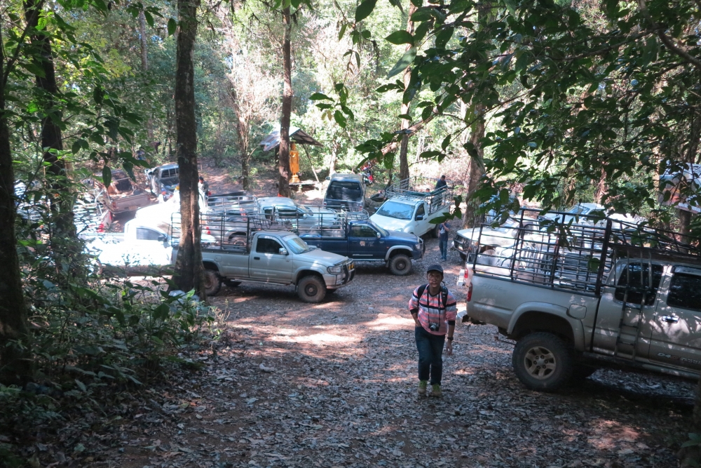 เราต้องนั่งรถไปยังจุดเดินเท้าอีกประมาณ 15 กิโลเมตรได้ ระว่างทางก็คุยกับลูกหาบไป เค้ามีรายได้วันละ 600 บาท จากการหาบของ ลูกหาบเค้าจะหาบของไปให้เราถึงที่เรากางเต๊นท์และกลับพร้อมกับเรา ช่วงที่เค้าไม่ได้เป็นลูกหาบก็จะทำไร่ ปลูกกะหล่ำและมะเขือเทศ เพราะดอยม่อนจอง เปิดให้ขึ้นแค่ช่วงเดือนพฤศจิกายน - กุมภาพันธ์ จากนั้นก็จะปิด เนื่องจากที่นี่เป็นป่าที่สมบูรณ์มาก ยังมีสัตว์ป่าค่อนข้างเยอะ และช่วงมีนาคม เมษายน อาจจะเปิดไฟป่าได้ และช่วงหน้าฝนก็อันตราย