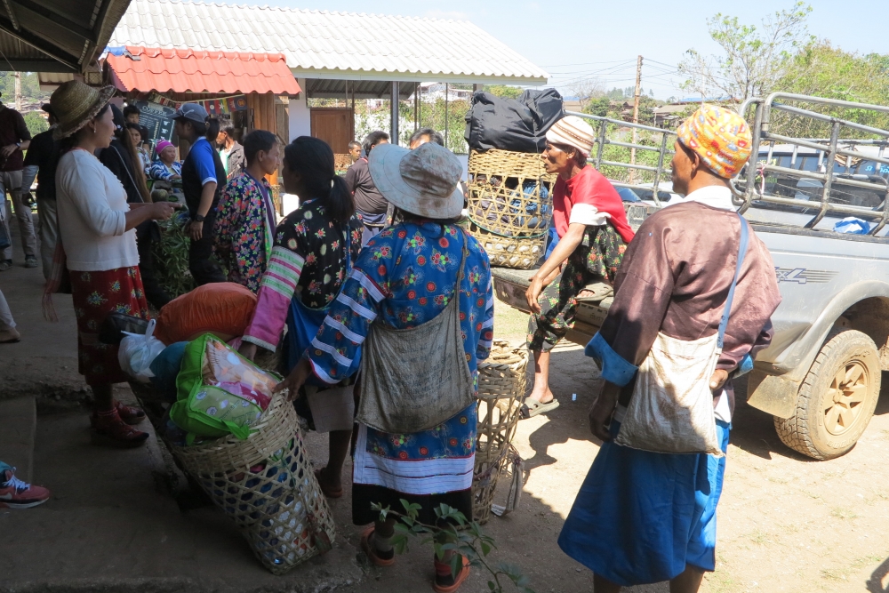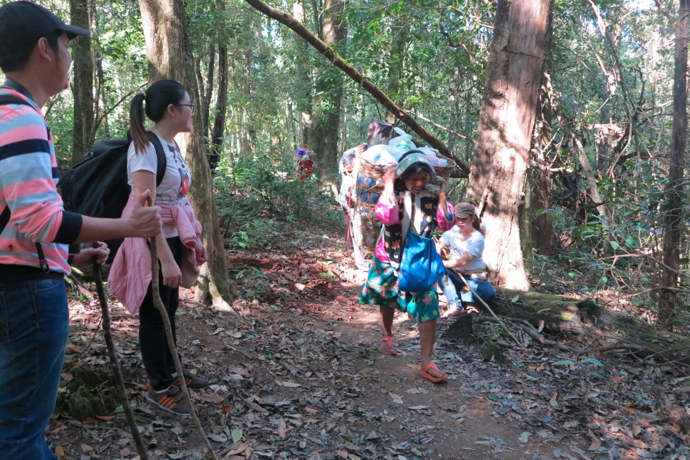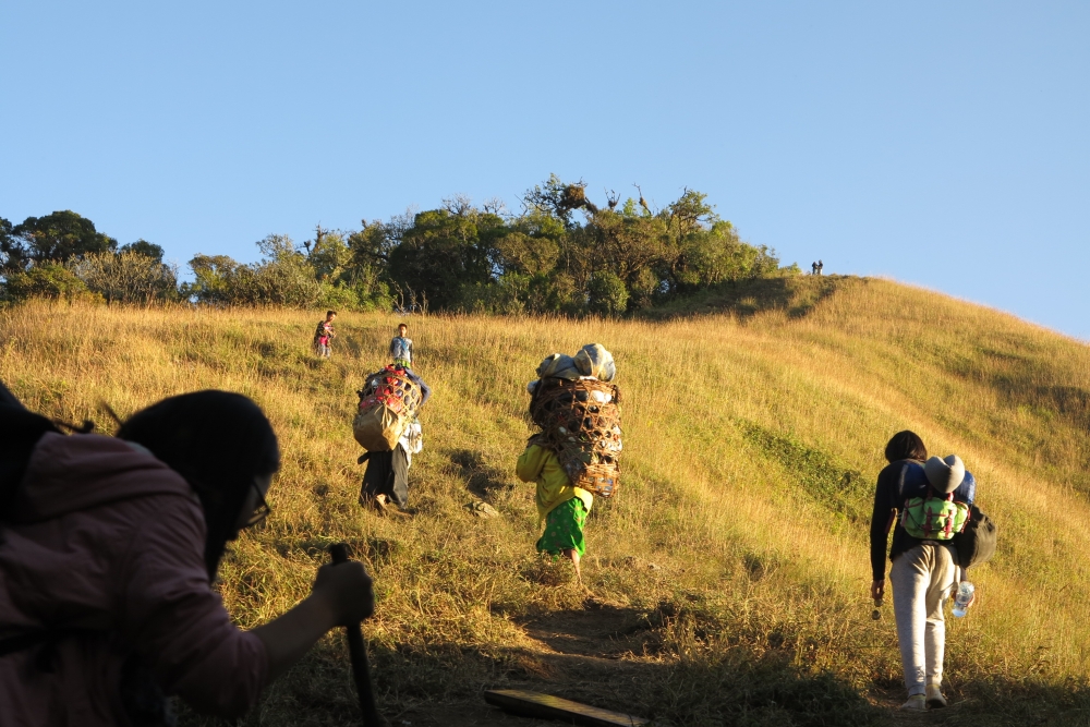 บรรดาเหล่าลูกหาบ มีทั้งผู้หญิง ผู้ชาย เป็นชาวปกาเกอะญอ บ้าง กะเหรี่ยงบ้าง ช่วงเวลานี้ดูวุ่นวายมาก