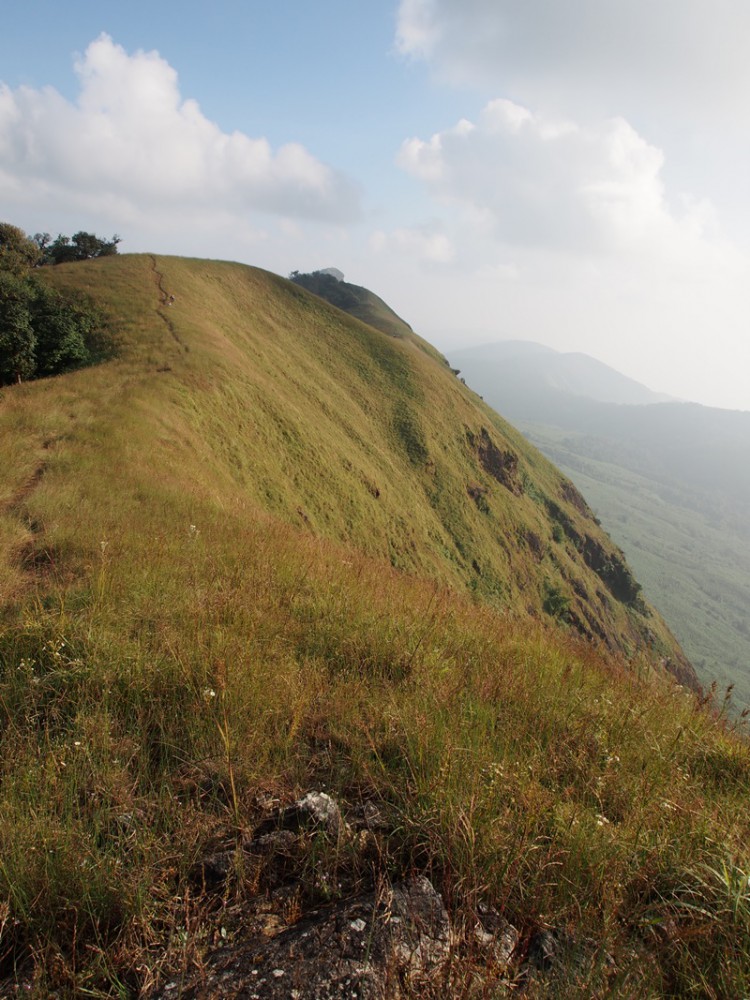หลังจากผ่านก้อนหินใหญ่แล้ว เราจะเริ่มเดินบนสันเขาไปเรื่อยๆ เป็นทุ่งหญ้าโล่งๆ เปิดวิวให้เห็นทิวเขาไกลสุดลูกหูลูกตา