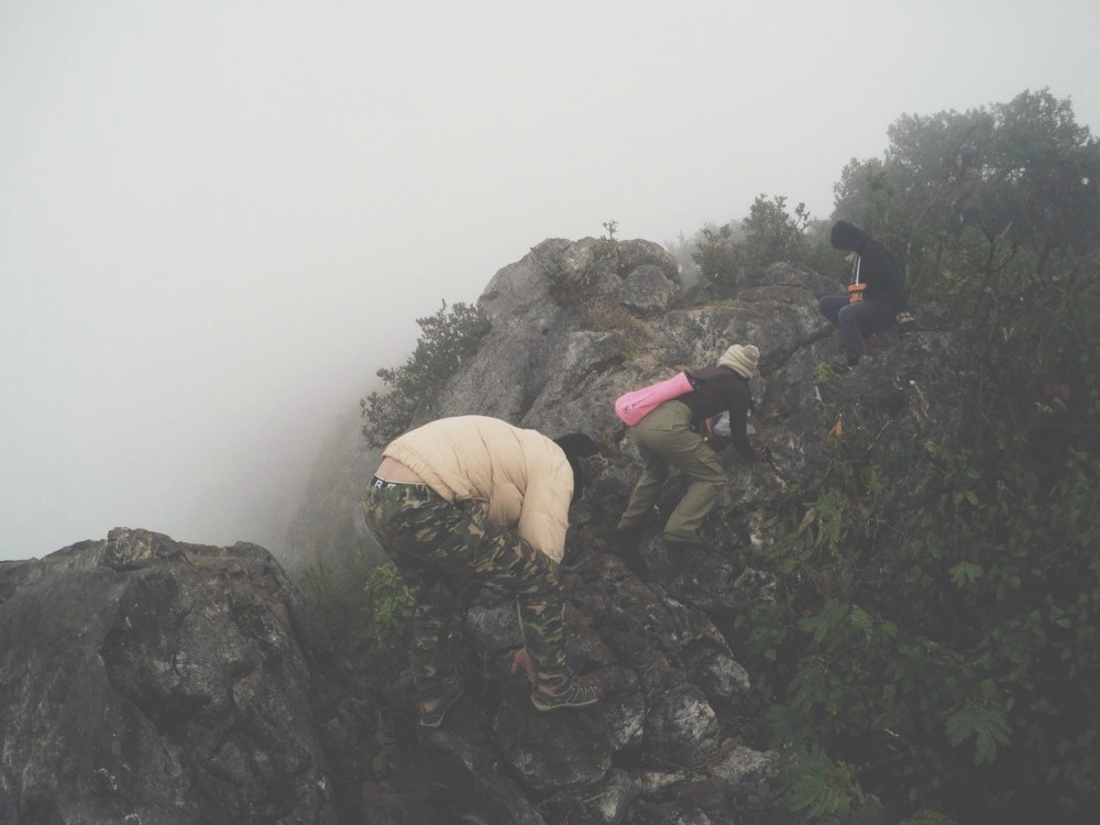 ทางขึ้นนี้โหดมาก ลมก็แรง ฉันกลัวความสูง ต้องใช้คำว่า คลานขึ้นเขานะ