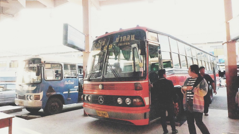 และแล้วเราก็มาถึงสถานีขนส่งช้างเผือกในเวลา 7.30 น. พี่ๆที่ขึ้นมาบนรถแดงบอกให้ขึ้นรถ เชียงใหม่ – ท่าตอน