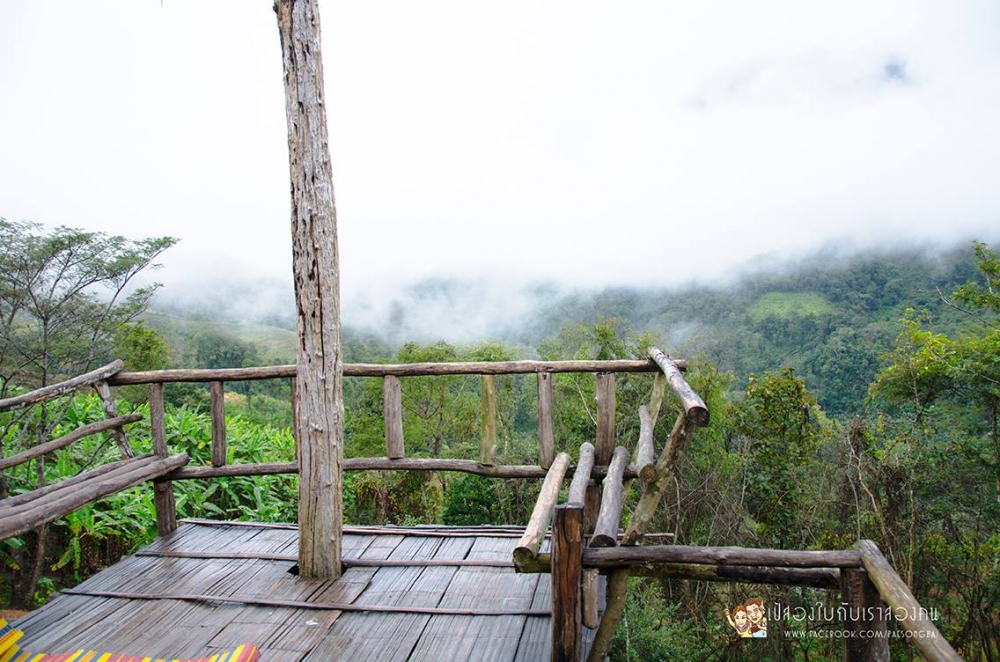 ระเบียงหน้าบ้านพัก มองเห็นยอดดอยหลงเชียงดาว