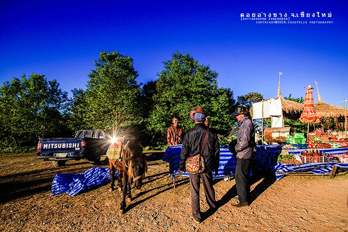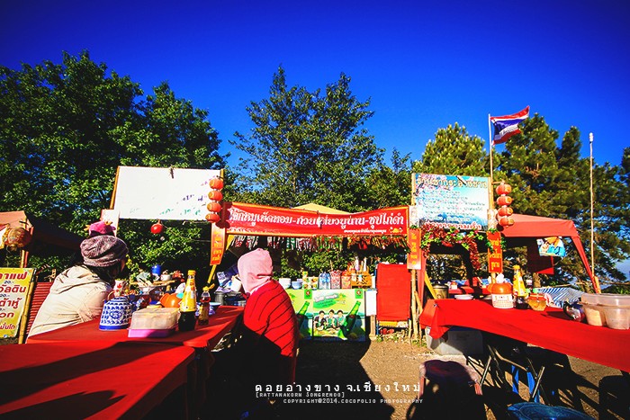 เมื่อรถถึงทางขึ้นดอยอ่างขาง จะมีคิวรถสองแถวจอดรอผู้โดยสารอยู่ประจำแต่ในช่วงที่เาไปถึงแม้จะเป็นวัน หยุดยาวเทศกาลตรุษจีน แต่ก็ใช่ว่าทุกที่จะหยุดกันบรรยากาศตอนบ่ายสามทีนี่เลยเงียบมากมีเพียงเรา กับเพื่อนเป็นกลุ่มนักท่องเที่ยวที่มาในวันธรรมดาเพียงไม่กี่คนเท่านั้น เพราะตอนลงรถตู้นึกในใจผีจะหลอกป่าวเนี่ยมันเงียบมาก...