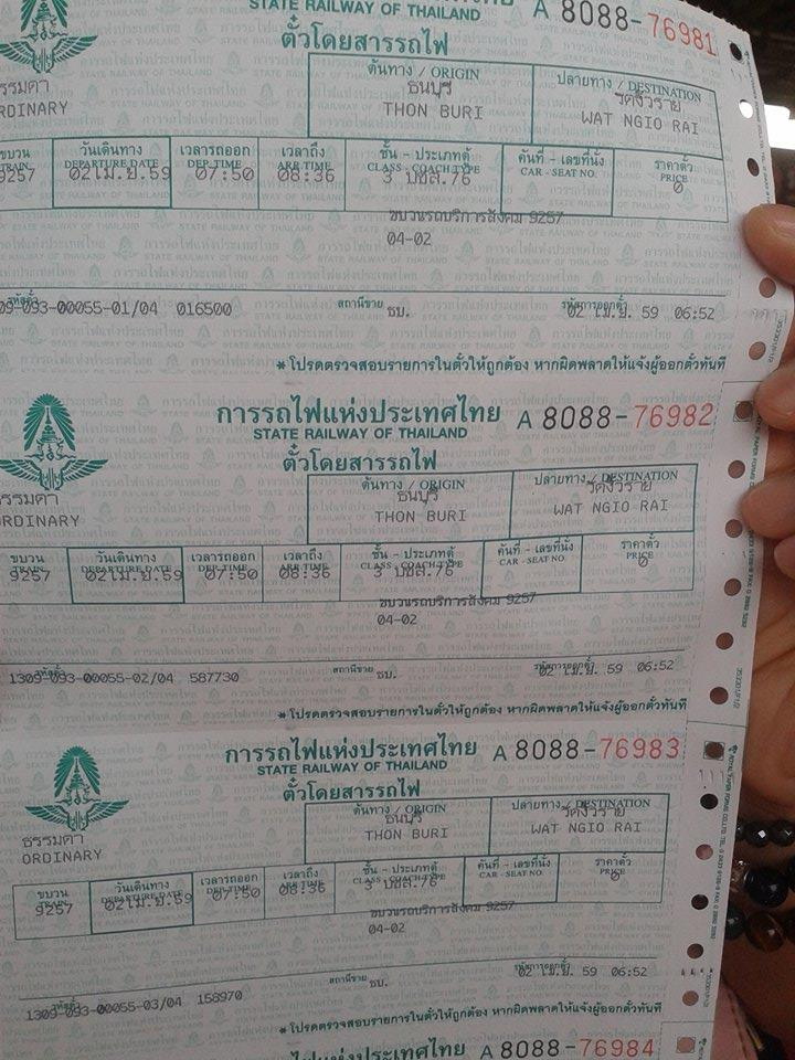 เรานำบัตรประชาชนไปแลกตั๋วรถไฟฟรี ขบวนที่เราจะไปคือ 257 ธนบุรี-น้ำตก รอบ 7.50 น.
