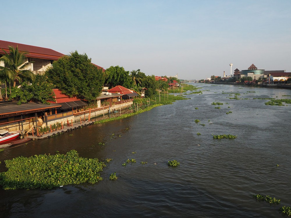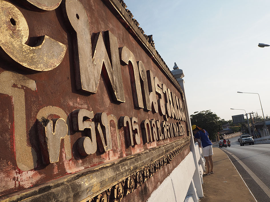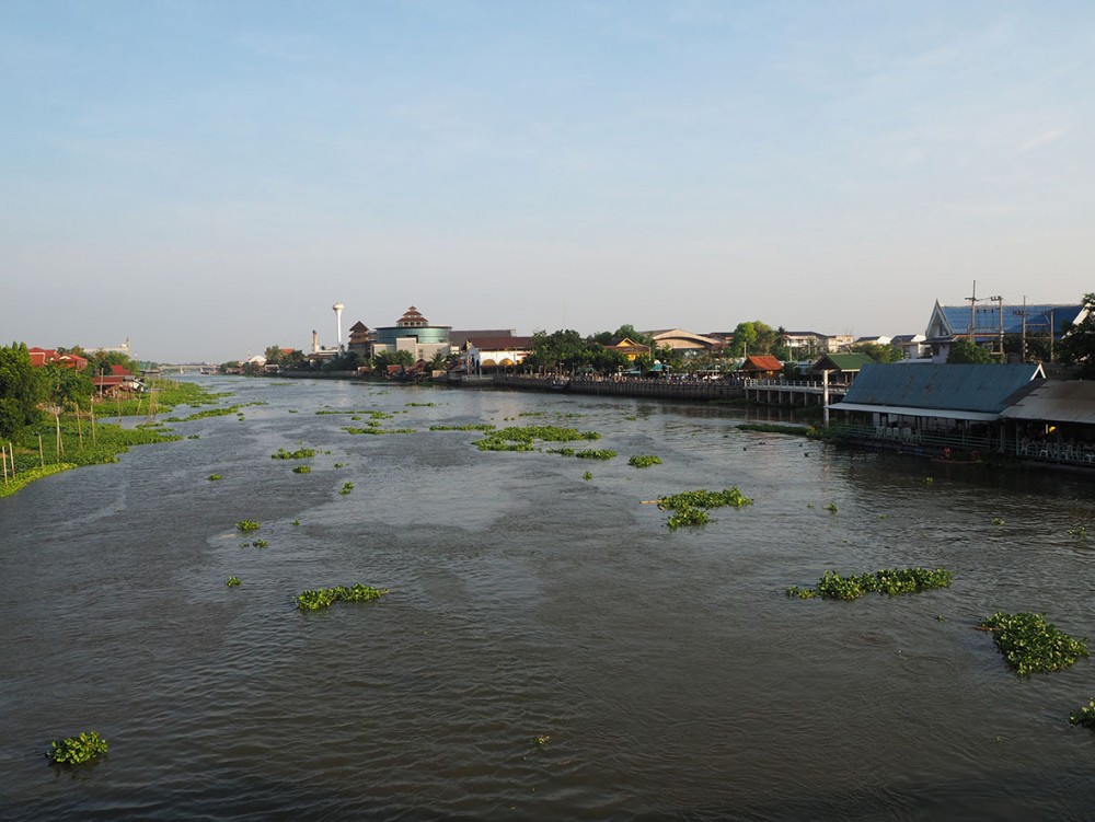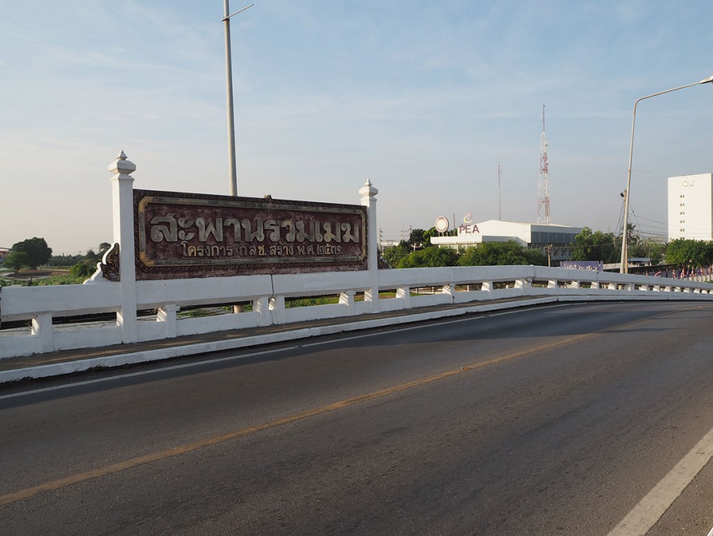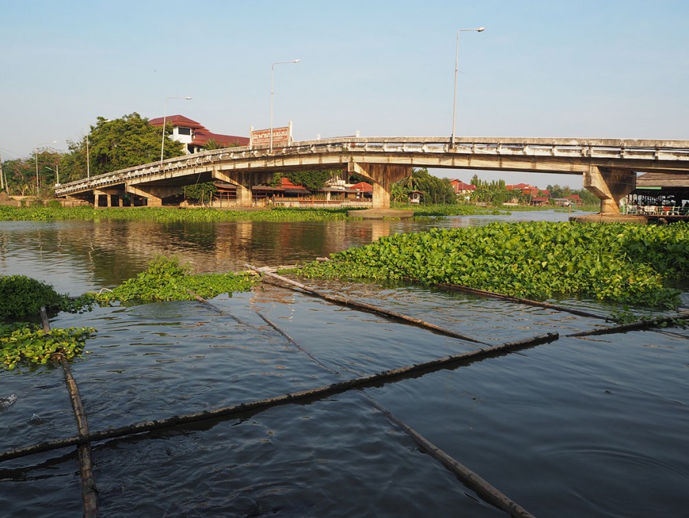 เดินจากโฮมสเตย์มาถึงสะพาน "รวมเมฆ" สะพานข้ามแม่น้ำนครชัยศรีหรือแม่น้ำท่าจีน ในน้ำมีปลา มีจริงๆ ละ และก็ตัวใหญ่มากด้วย