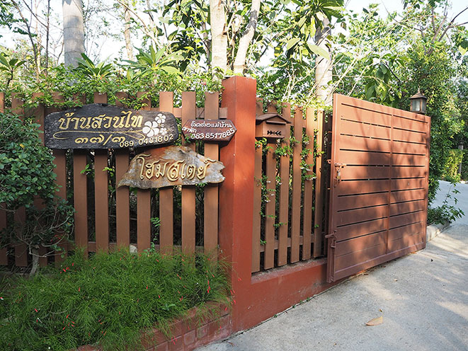 จองบ้านสวนไทไว้ค่ะ ไม่ไกลจากตลาด นั่งวินมอไซค์เข้าไปแป๊บเดียวก็ถึง หรือจะเดินก็สามารถ เพราะไม่ไกลเลยจริงๆ