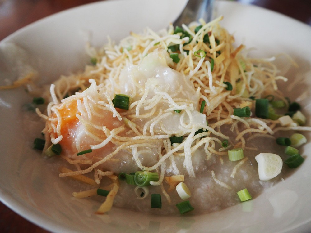 มื้อเช้าของบ้านสวนไทคือโจ๊กใสไข่จ้า อร่อยนะ เหยาะซอสนิด พริกไทยหน่อย ง่ำๆ สองสามคำก็หมดละ ลื่นๆ หายไปในกระเพาะ