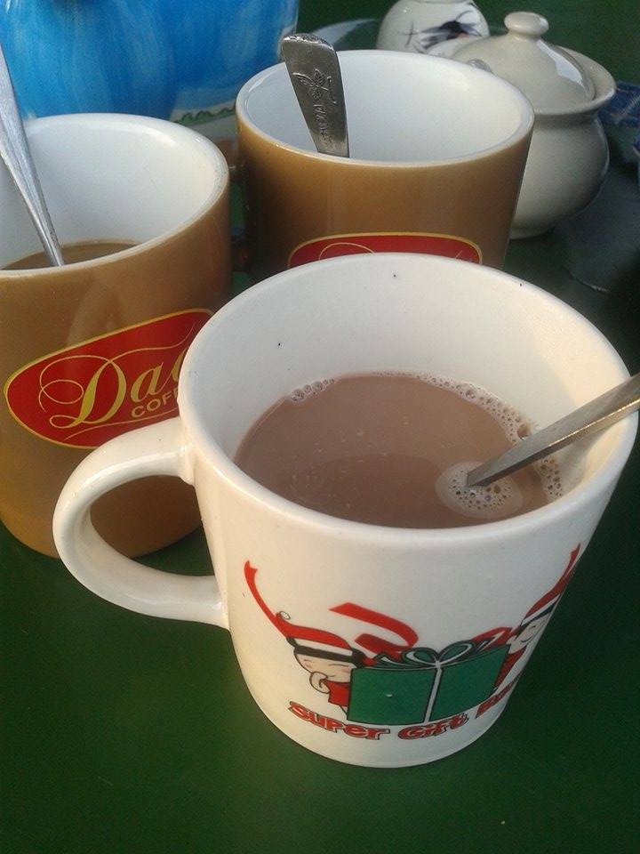 ระหว่างรอรถไฟมา พวกเรารองท้องกันเบาๆด้วยกาแฟและโอวัลติน