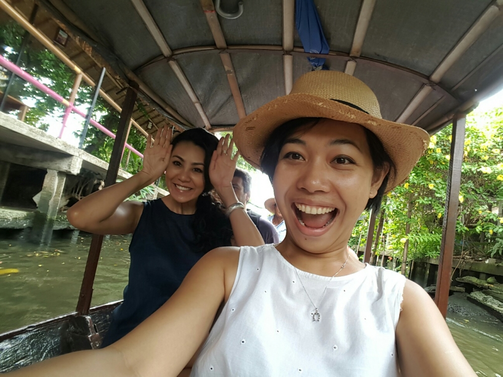 สมาชิกของเรา ด้านหน้าเป็นหนุ่มน้อยกับคุณยาย ที่มารอเรือก่อนเรา เราสองคนนั่งกลาง เเละต่างชาติชาวสเปน สองคนนั่งท้ายเเละมีคุณลุงพายเรือพาเราไปเที่ยวชมคลองกัน สามกลุ่มนี้ไม่ได้รู้จักกันนะคะ เราตกลงเเชร์เรือกัน เพราะว่านานอยู่ กว่าเรือจะมาซักลำ
