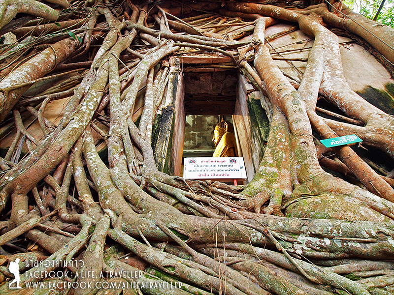 มาโบสถ์ปรกโพธิ์กี่ครั้งไม่เคยเจอคนน้อยสักทีแม้กระทั่งวันธรรมดา ยิ่งวันเสาร์แบบนี้ต้องเรียกว่าหนาแน่นเอาการทีเดียว แม้เคยมาชมหลายครั้งผมยังรู้สึกว่าที่นี่สวยและขรึมขลังมาก ถึงมุมมหาชนจะโดนทางวัดทำป้ายถาวรขึ้นมาบังความสวยงามก็ตาม และถึงจะชื่อโบสถ์ปรกโพธิ์ทว่าความจริงไม่ได้มีเพียงเฉพาะต้นโพธิ์ปกคลุมโบสถ์โบราณนะครับ มีทั้งหมดสี่พันธุ์คือ ต้นโพธิ์ ต้นไทร ต้นไกร และต้นกร่าง