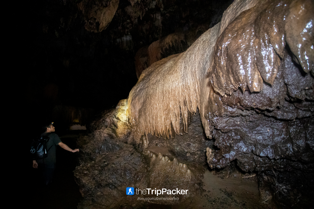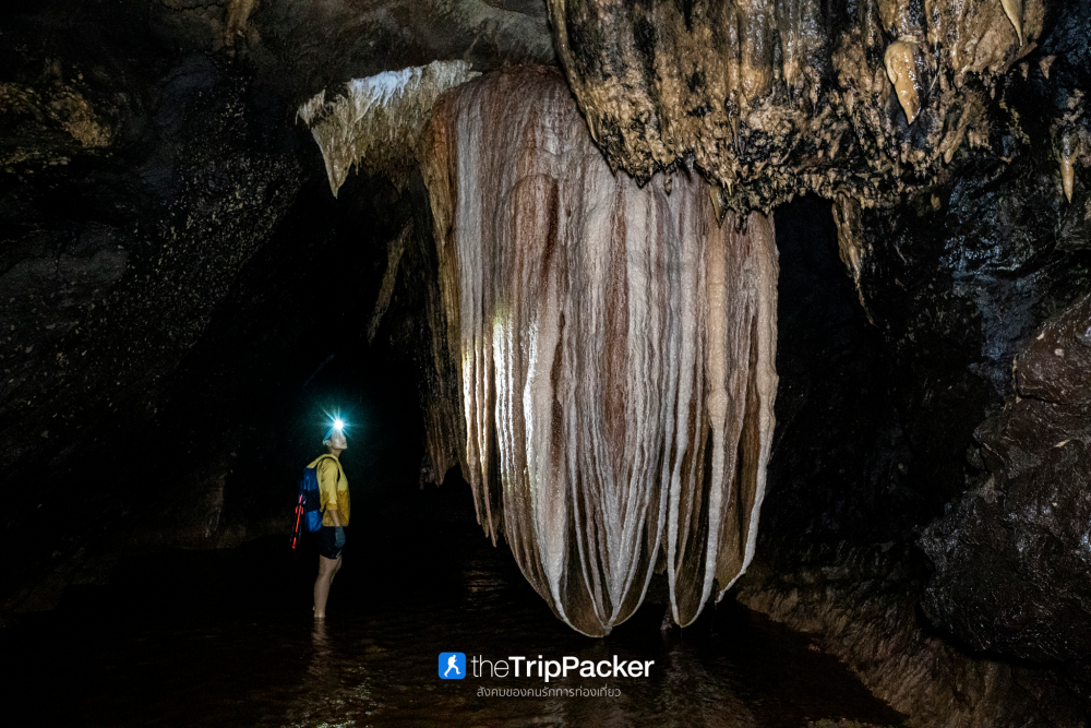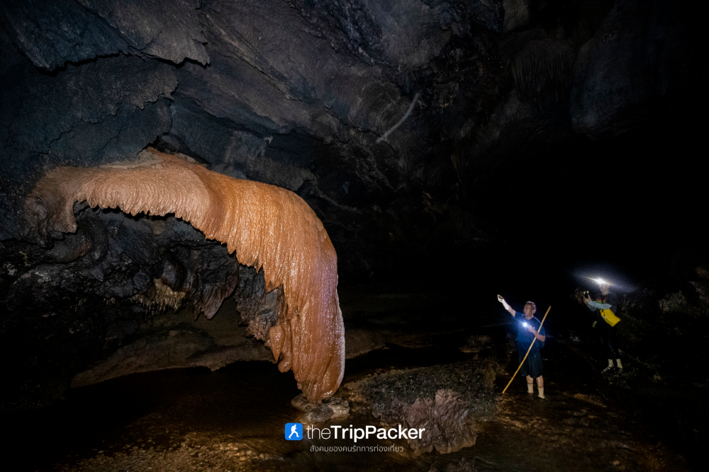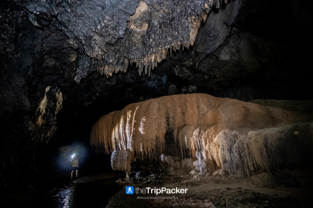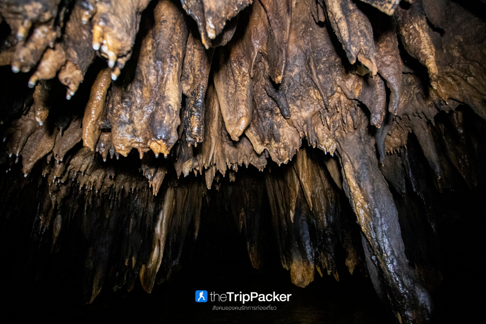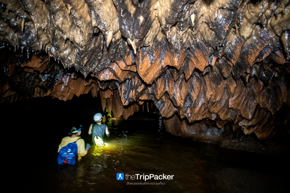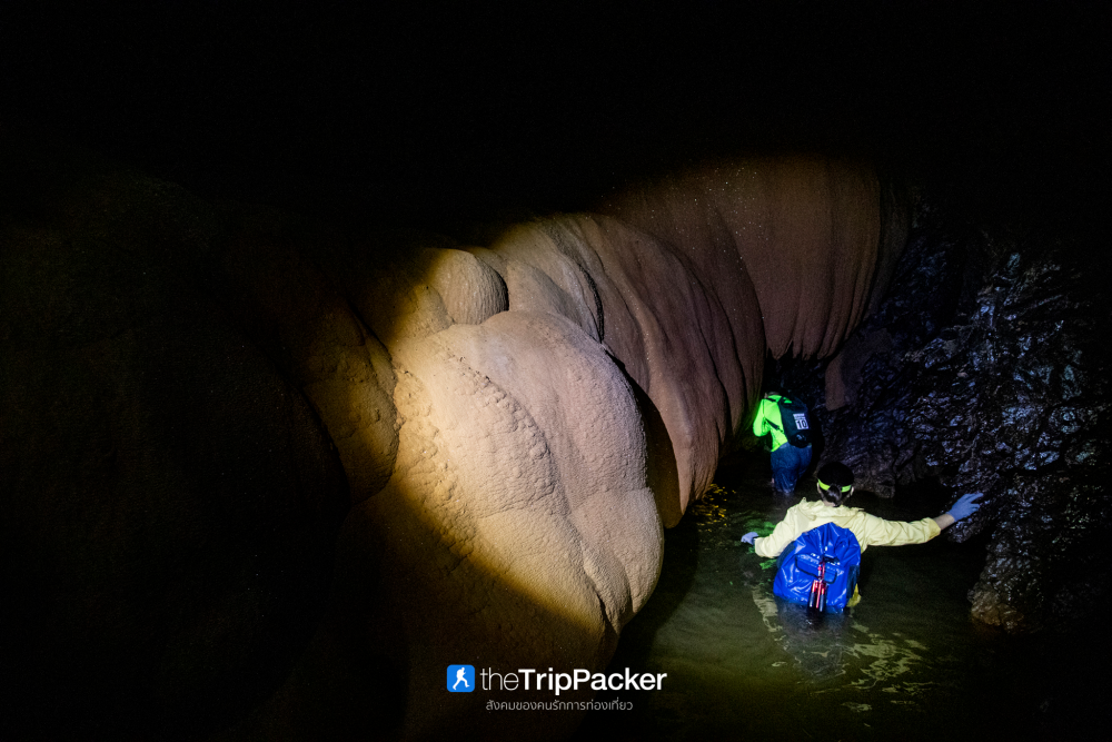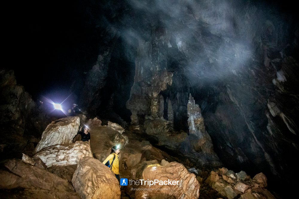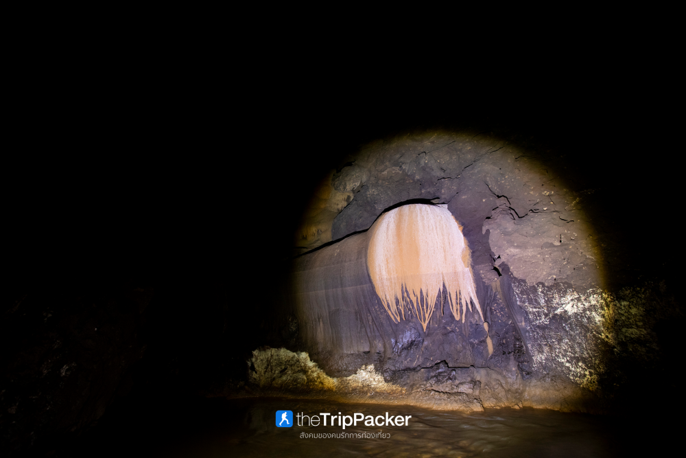 แค่มุดแรกจากช่องแคบ ๆ ของปากถ้ำเท่านั้น แสงสว่างจากภายนอกก็หายไปกลายเป็นความมืดสนิทที่เข้ามาแทนที่ จะมีเพียงแสงสว่างเล็ก ๆ จากไฟคาดหัว ซึ่งระยะการมองเห็นก็ครอบคลุมแค่รอบตัวใครรอบตัวมันเท่านั้น นาทีนี้สิ่งที่สำคัญที่สุดคือ “เดินไปพร้อมกัน ระมัดระวัง หูฟังไกด์ อย่าให้ไฟดับ”