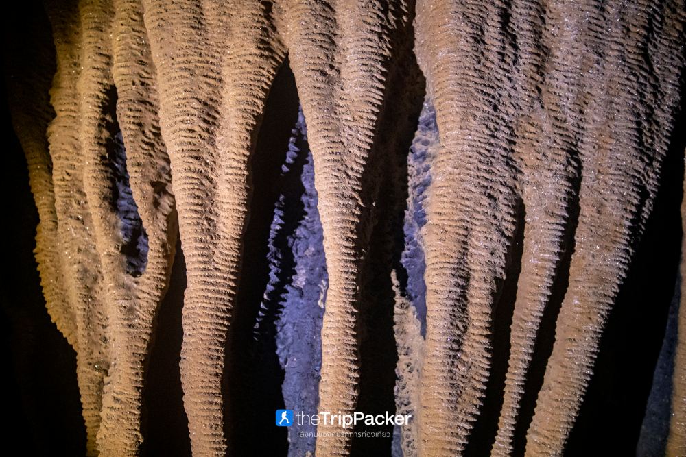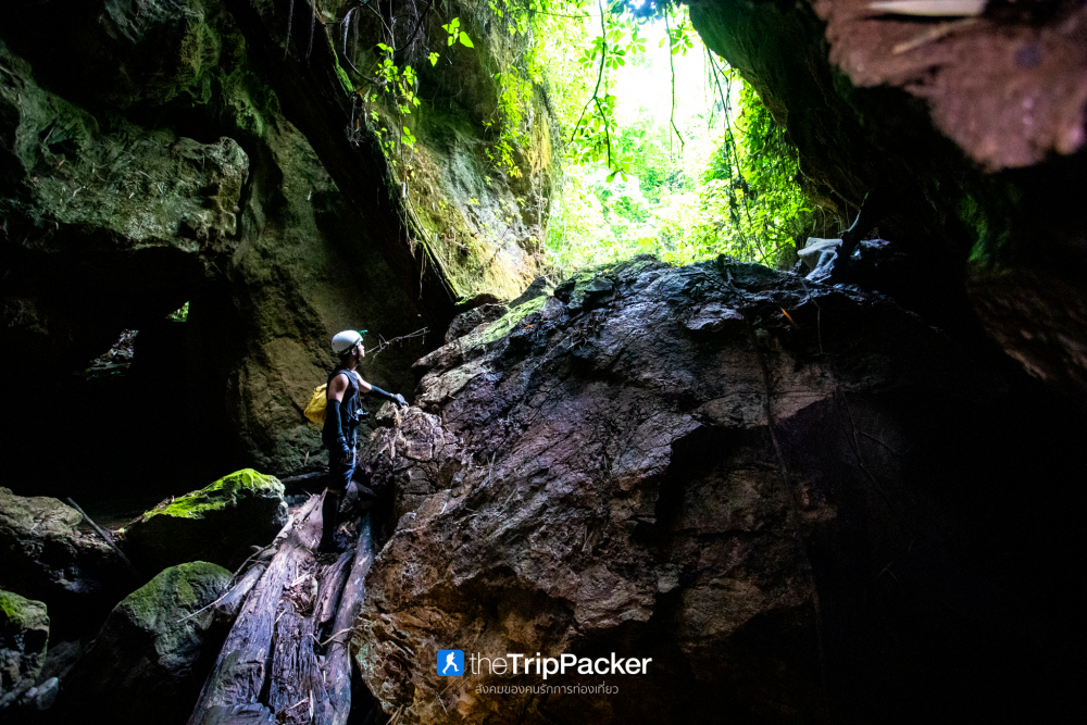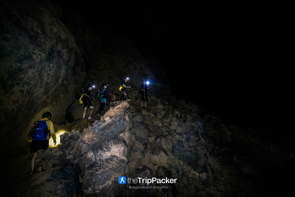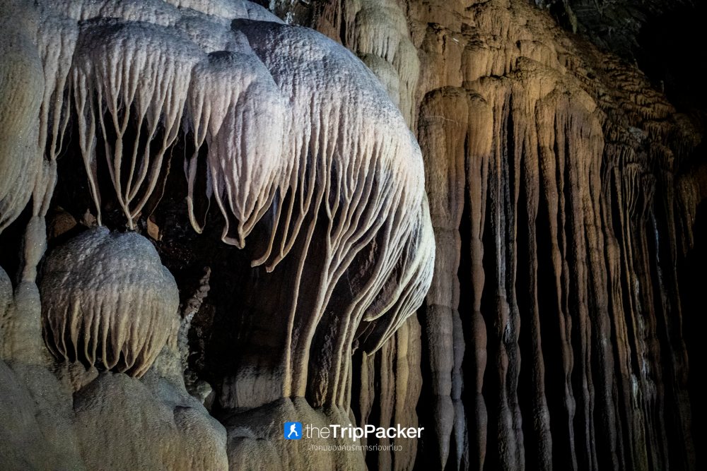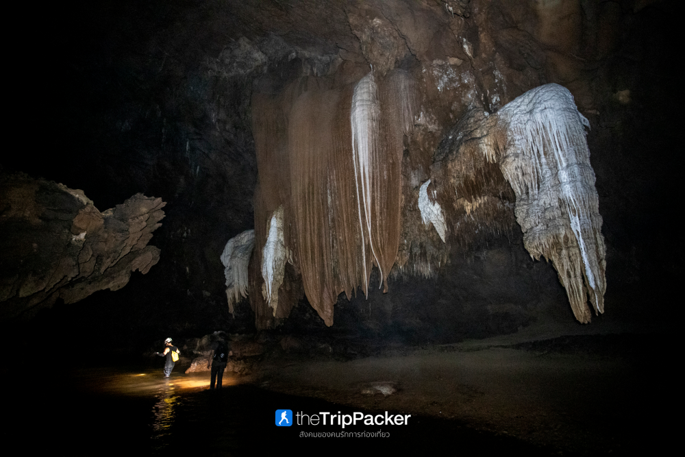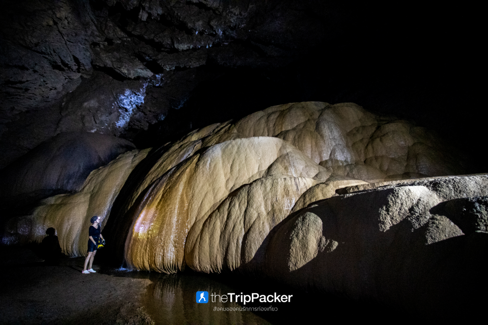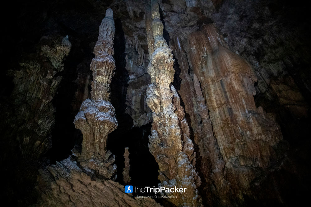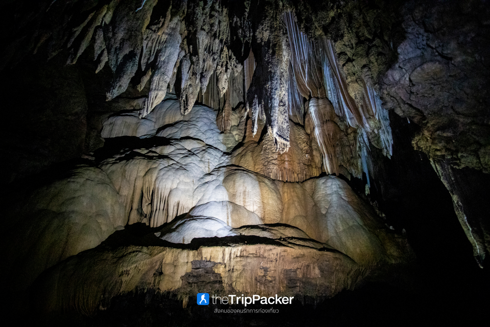 แค่มุดแรกจากช่องแคบ ๆ ของปากถ้ำเท่านั้น แสงสว่างจากภายนอกก็หายไปกลายเป็นความมืดสนิทที่เข้ามาแทนที่ จะมีเพียงแสงสว่างเล็ก ๆ จากไฟคาดหัว ซึ่งระยะการมองเห็นก็ครอบคลุมแค่รอบตัวใครรอบตัวมันเท่านั้น นาทีนี้สิ่งที่สำคัญที่สุดคือ “เดินไปพร้อมกัน ระมัดระวัง หูฟังไกด์ อย่าให้ไฟดับ”