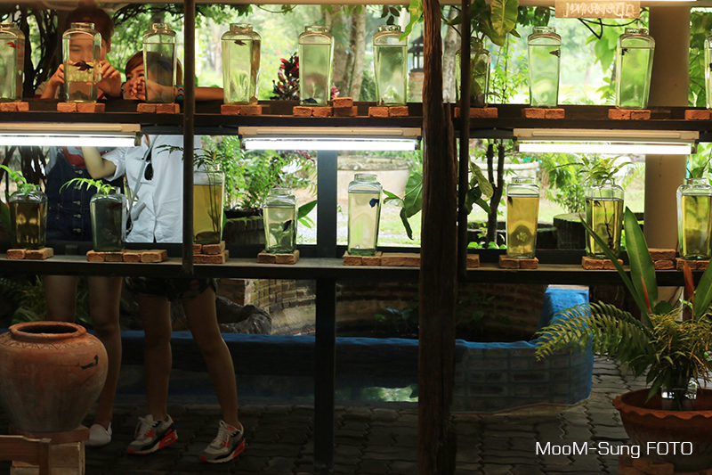 หลังจากที่นั่งพักเหนื่อย สำรวจความน่ารักและความเป็นกันเองของเจ้าของร้านเรียบร้อย ก็ได้สอบถามเส้นทางกับเจ้าของร้านว่าบางกระเจ้าไปทางไหน? จริงๆ เราถามแบบนี้จริงๆ ไม่ได้ตลกนะ เพราะบอกแล้วว่าพวกเราไม่รู้!! >.< เมื่อได้คำตอบเป็นที่น่าพอใจแล้วก็ได้เวลาออกเดินทางกันต่อ สถานีต่อไป . . พิพิธภัณฑ์ปลากัดไทย . .