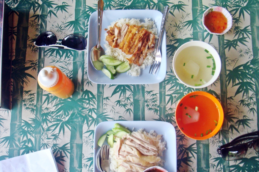 ปั่นจักรยานรู้สึกว่าเริ่มหิวข้าว เลยแวะกินข้าวมันไก่ข้างทาง กับ ข้าวมันไก่ทอด