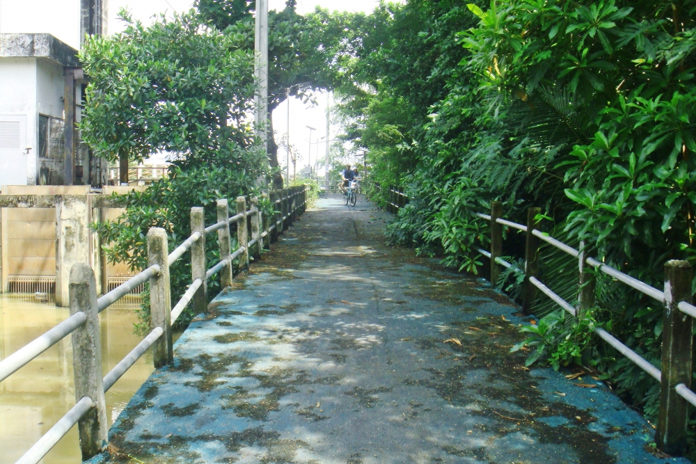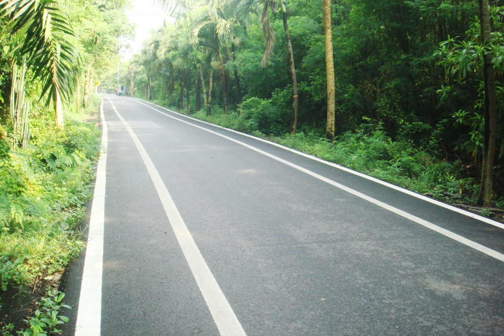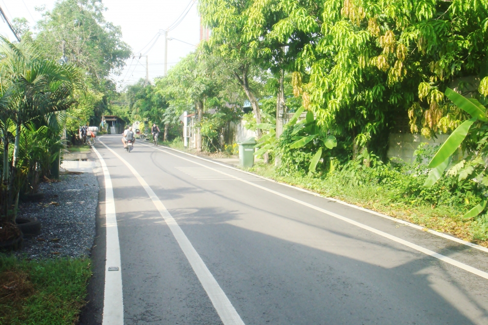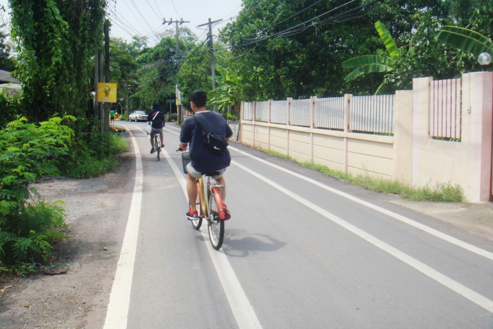 ปั่นไปตามทางเรื่อย ที่นี่จะมีการตีเส้นสีขาว สำหรับช่องจักรยาน และสำหรับรถใหญ่