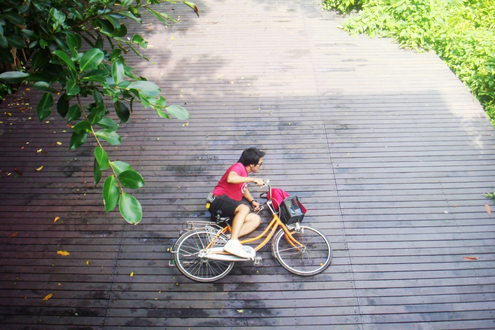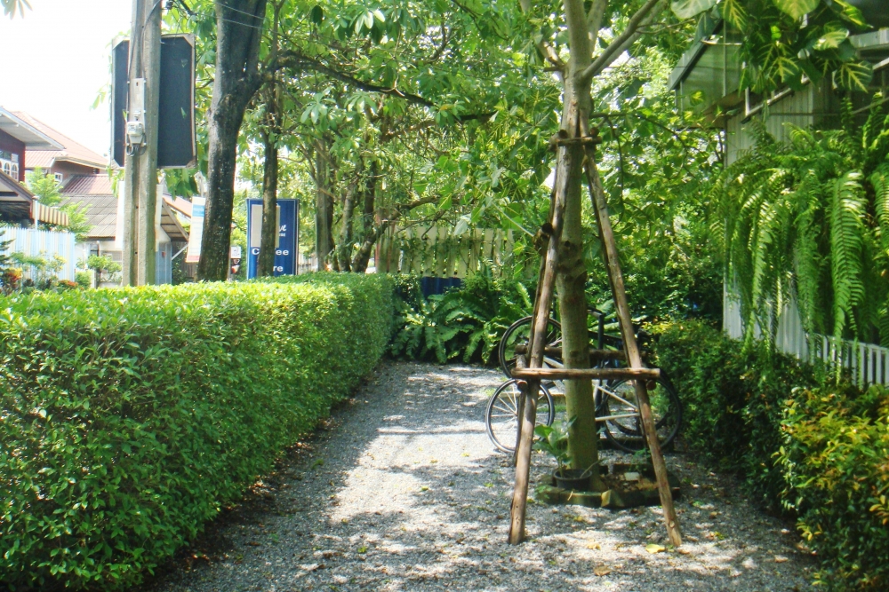 ปั่นมาไม่ไกลมาก จะเห็นทางเข้าสวนอยู่ทางขวามือเลย หน้าทางเข้ามีร้านเช่าจักรยานหลายร้าน