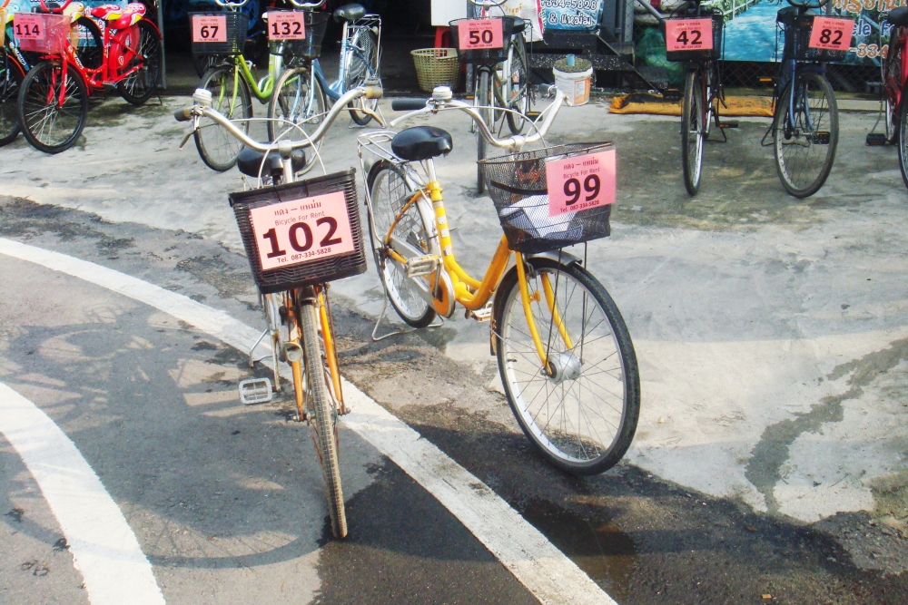 โดยส่วนใหญ่นักท่องเที่ยวที่เดินทางมาที่นี่ จะนิยมเช่าจักรยานปั่นลัดเลาะไปเรื่อยๆ ซึ่งร้านเช่าจักยานก็มีอยู่หลายร้านหลายจุดมาก เรียกว่าจะเดินไปทิศทางไหนก็หาร้านเช่าจักรยานกันได้ง่ายๆเลยค่ะ ราคาส่วนใหญ่จะอยู่ที่ คันละ 50 บาท/วัน แต่ต้องปั่นกันด้วย ความระมัดระวังนะ เนื่องจากที่นี่เป็นเขตชุมชนที่มีทั้งรถยนต์และมอเตอร์ไซค์สัญจรไปมาทั้งวัน