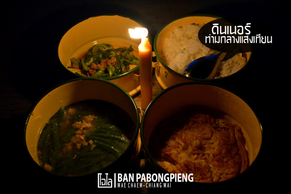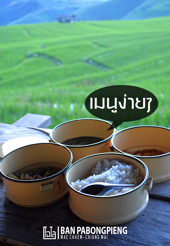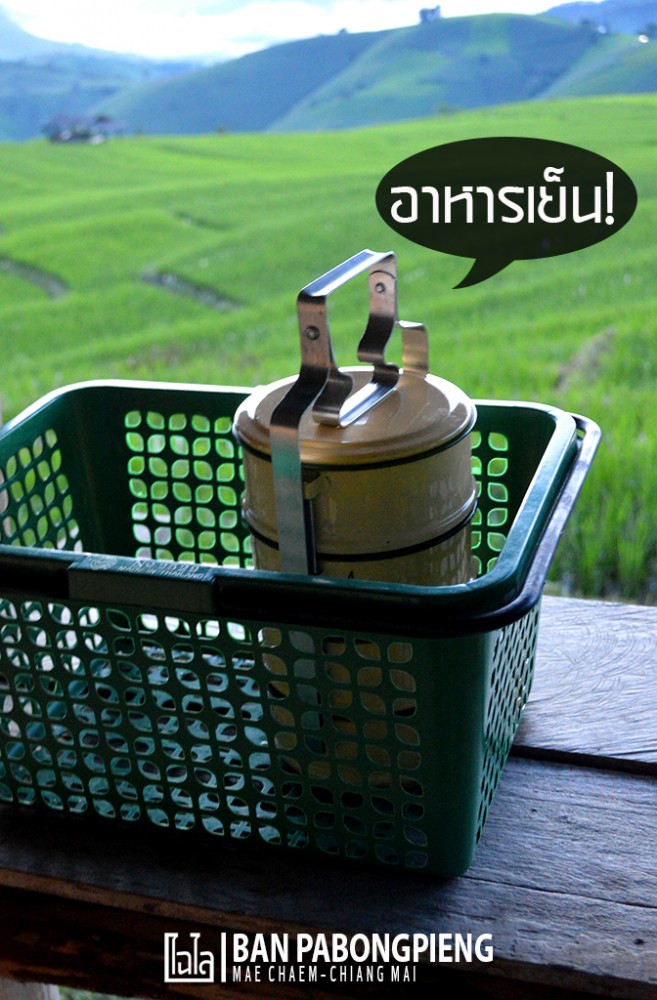 - เมื่อได้เวลาอาหารเช้า-เย็น จะมีคนหิ้วปิ่นโตอาหารมาให้ถึงหน้ากระท่อมที่พัก