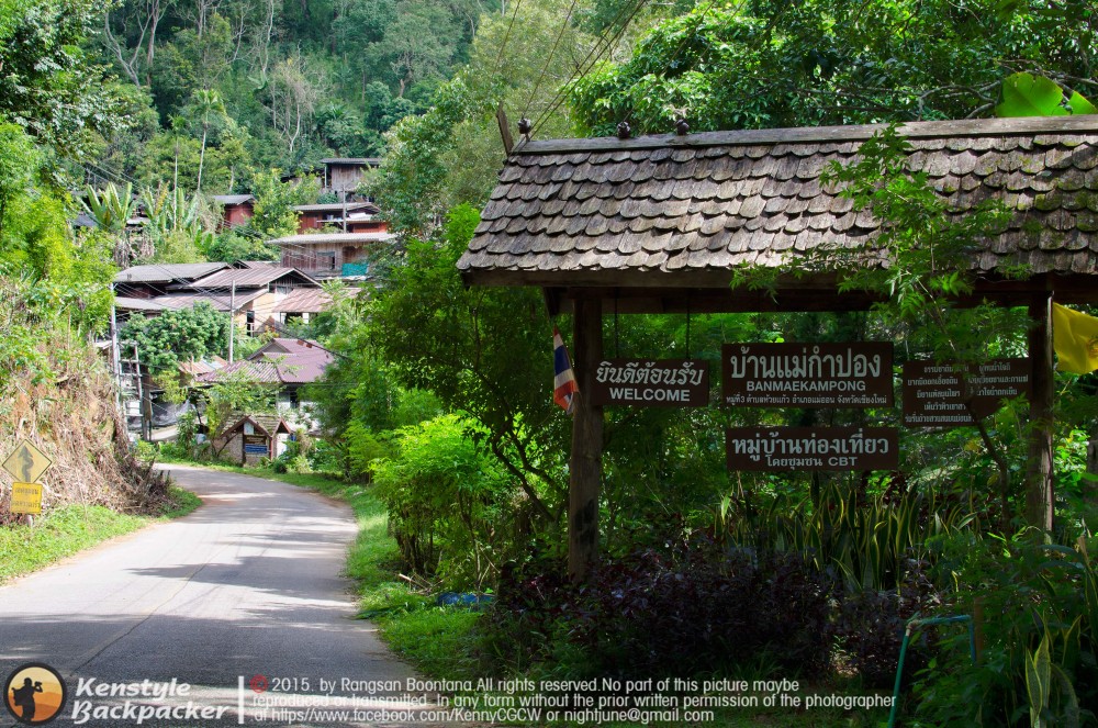บ้านแม่กำปองตั้งอยู่กิ่งอำเภอแม่ออน ออกจากสนามบินก็มุ่งหน้ามาทาง อ.สันกำแพง มายังกิ่งอ.แม่ออน และเลยโครงการหลวงบ้านตีนตกมานิดเดียวก็ถึงตัวหมู่บ้าน รวมระยะทางประมาณ 50 กว่าโล หมู่บ้านเล็กๆนี้ตั้งอยู่ในหุบเขามีถนนเข้าหมู่บ้านทางเดียวเป็นทางคอนกรีตเล็กๆ รถพอสวนกันได้