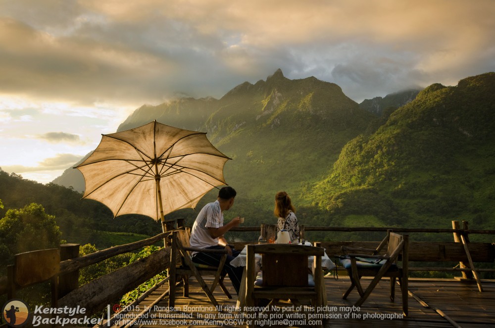 อาหารเช้าที่นี่จะเป็นข้าวต้มร้อนๆ กับกาแฟ และวิว !! เติมได้ไม่อั้น