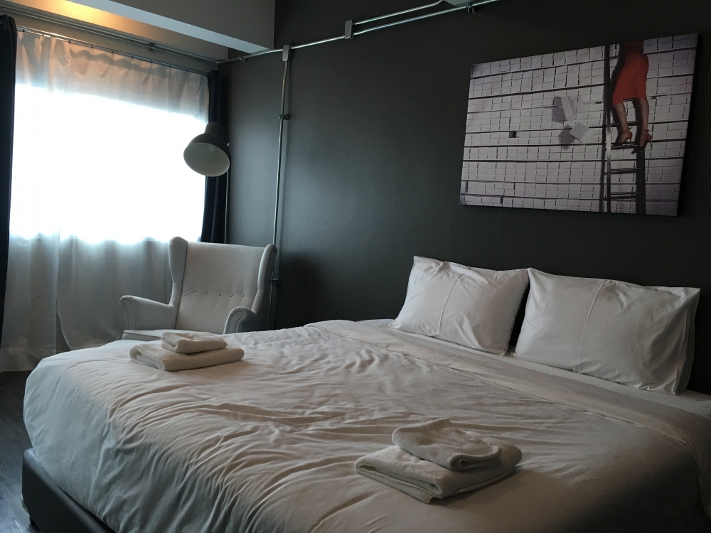 ได้ห้อง 201 กับ 202 อยู่ชั้น 2 ห้องพักจะมีสองโทนสี ขาว กะ ดำ เตียงคิงไซค์ มีโซฟาเบดพร้อมกับโคมไฟอันโต ทีวี แอร์ และปลั๊กไฟมีแยะมาก ไม่หวงไม่กั๊ก ไม่ต้องหิ้วสามตามาต่อเอง ส่วนห้องน้ำกว้างมาก เอาหมอนเข้าไปนอนได้เลยอ่ะ 5555 แบ่งเป็นโซนห้องน้ำ อาบน้ำ(มีน้ำอุ่นด้วย) อ่างล้างหน้า