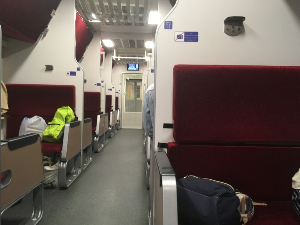 ขบวนใหม่ไฉไลมาก เบาะที่นั่งสีแดง ประตูระหว่างคันเป็นระบบสัมผัส ห้องน้ำถือว่าสะอาด ชักโครกแบบสูญญากาศ มีอ่างล้างหน้า ทิชชู่พร้อม มีจอแสดงผลว่าตอนนี้อยู่ตรงไหน สถานีอะไรของประเทศไทย มีตู้เสบียง(ร้านค้าเคลื่อนที่ได้) ประมาณสองทุ่มพนักงานก็จะมากางเตียงให้ แต่ถ้ายังไม่อยากกางก็บอกพี่เขาได้ ที่นอนสะอาด หมอนโอเค มีปลั๊กไฟทั้งเตียงบ เตียงล่าง มีน้ำฟรีให้ 1 ขวด