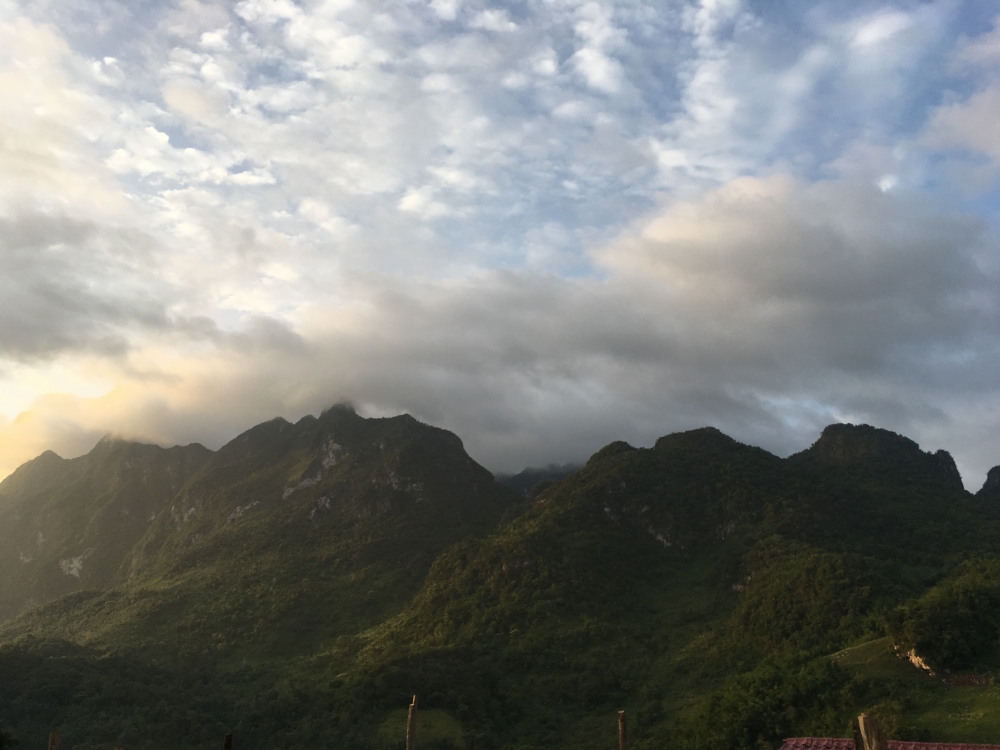 ตื่นเช้ามาก ตีห้ากว่าๆ ทั้งๆ ที่เมื่อคืนก็นอนดึก ไม่ใช่ไรหรอก ไก่ขันทั้งหมู่บ้าน แล้วคือมีอยู่ตัวนึงมายืนขันอยู่หน้าบ้านเลยไง เออตื่นก็ได้ว่ะ 5555 สว่างเร็วมาก
