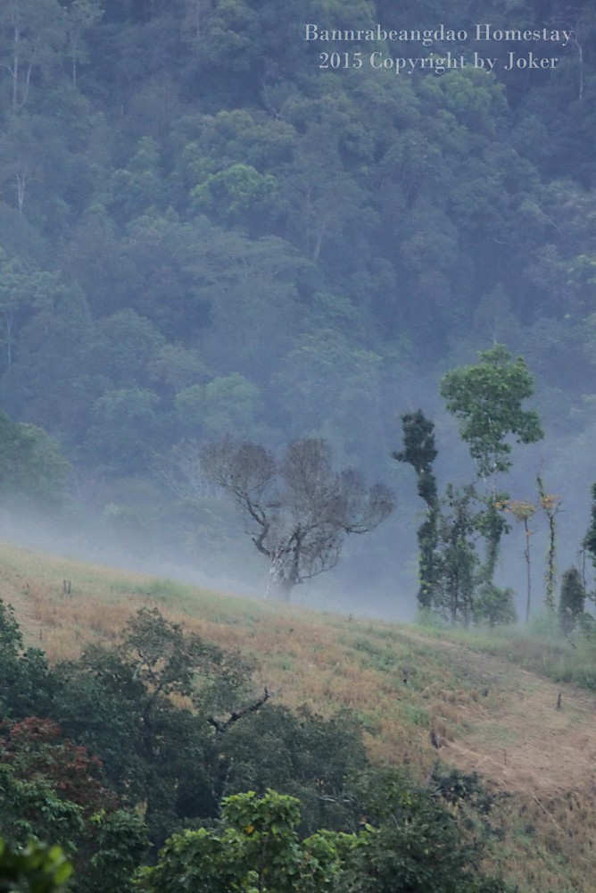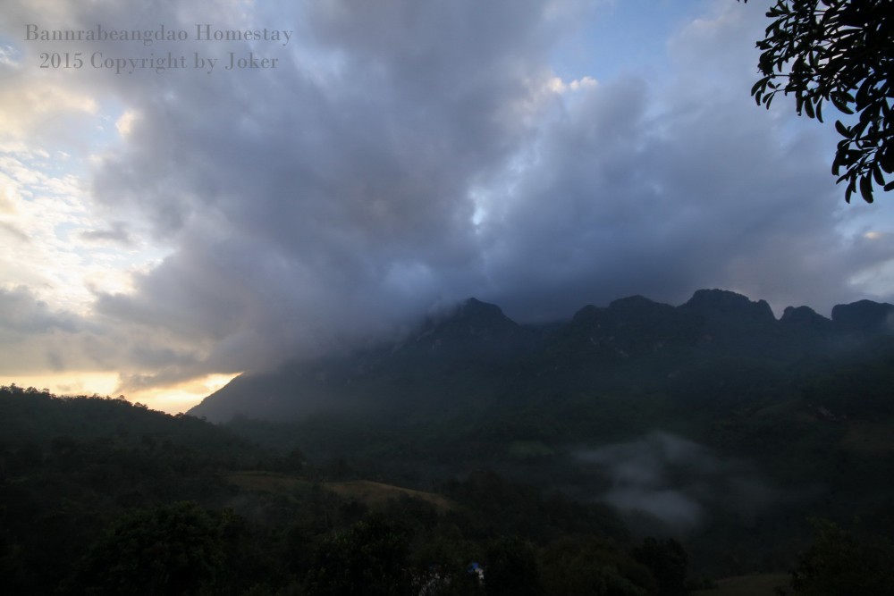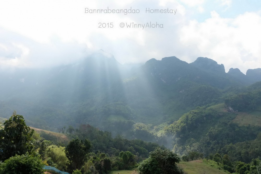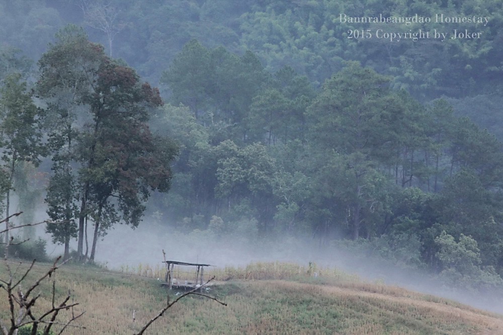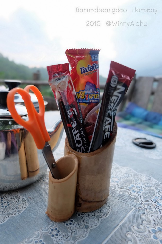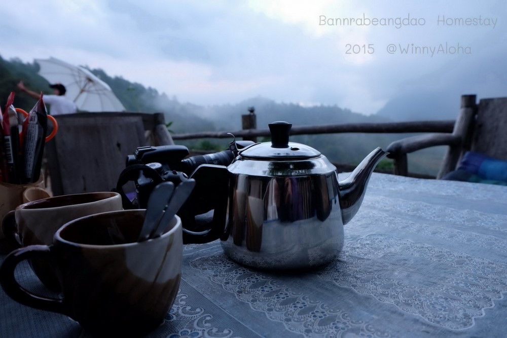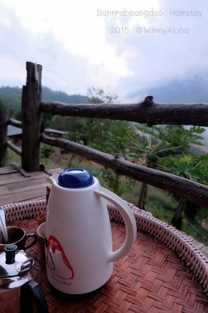 ตื่นแต่เช้ามาชื่นชมวิวดอยหลวงเชียงดาวที่มีสายหมอกลอยอ้อยอิ่ง ลมเย็นสบาย จิบกาแฟร้อนๆริมระเบียง ธรรมชาติงามๆนี่บำบัดจิตใจให้ปลอดโปร่งโล่งสบายได้ดีทีเดียว มื้อเช้ามีข้าวต้มร้อนๆ ชา กาแฟ ให้ทานค่ะ
