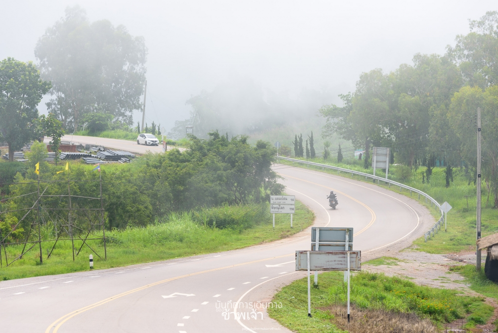 รูปจาก Samsung Galaxy S7 รีบจับภาพให้ดูว่าช่วงที่ขี่รถออกจากทางในวัดช่วงหนึ่งมีหมอกไหลผ่านมา เย็นหวิว ๆ เลยทีเดียว แล้วหมอกแบบไหลเร็วแบบเห็นได้ชัดเลยครับ