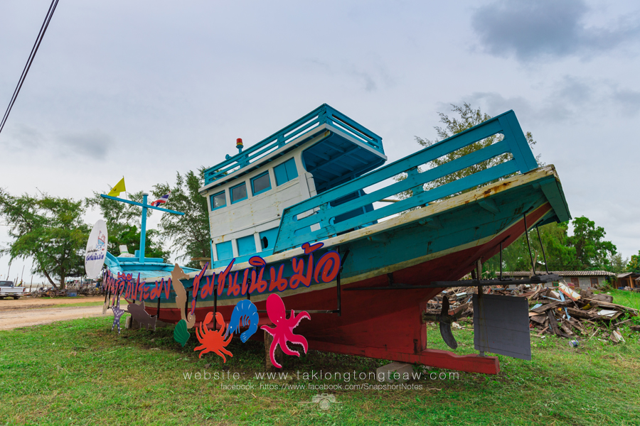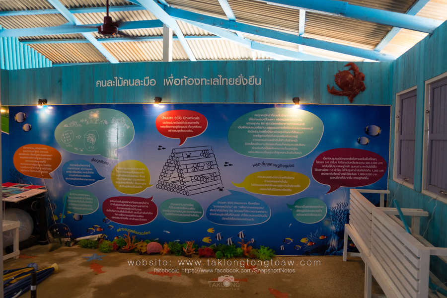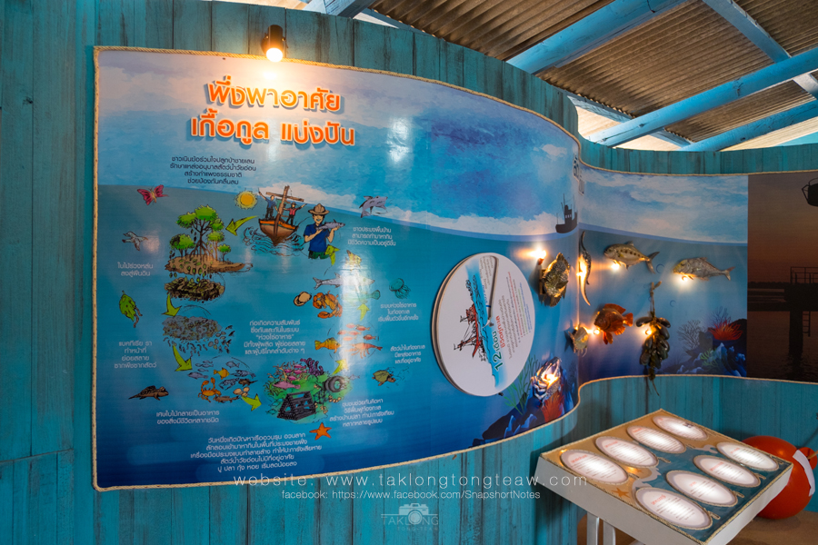 หลังจากนั้นเรานั่งเรือกลับขึ้นฝั่ง คุณลุงพามาดูศูนย์เรียนรู้วิถีชีวิตชาวประมงชุมชนเนินฆ้อ ซึ่งลุงออยก็ได้เล่าให้เราฟังถึงที่มาที่ไปของศูนย์แห่งนี้ด้วย