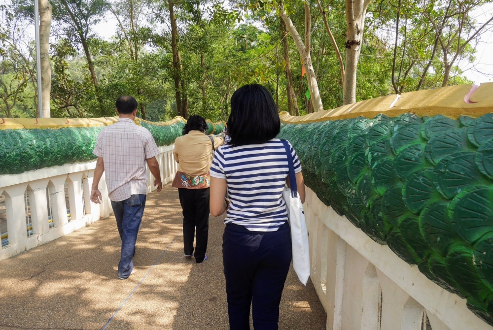 ยังไม่ถึงครึ่งชั่วโมง ผู้คนมาจากไหนกันเริ่มแน่นตั้งแต่ทางเข้าที่เป็นพญานาค 7 เศียรขนาบคู่ ซึ่งเป็นจุดเช็คอินและถ่ายรูปของผู้มาเยือนจำนวนมาก