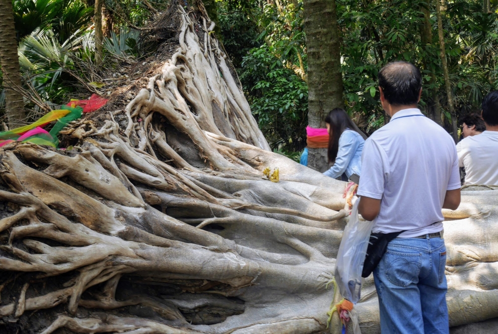 ไม่สามารถฝ่ากลุ่มคนเข้าไปถึง และเข้าได้ใกล้ เจ้าปู่ - เจ้าย่า ได้มากสุดเพียงไกลๆ เท่านี้ จึงขอเดินสำรวจบริเวณรอบๆ ทางขวามือของศาลเจ้าปู่-เจ้าย่า คือบริเวณต้นมะเดื่อใหญ่ ผู้คนนิยมไปขอโชคลาภ