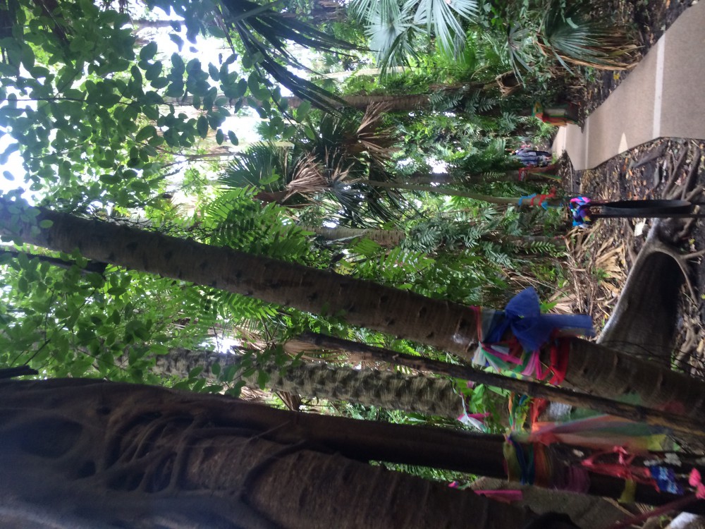 ทางเข้าต้นมะเดือยักษ์ซึ่งรอบๆ แป้งเยอะมาก เราไปลูบๆ ยังไม่เห็นมีเลขเลย