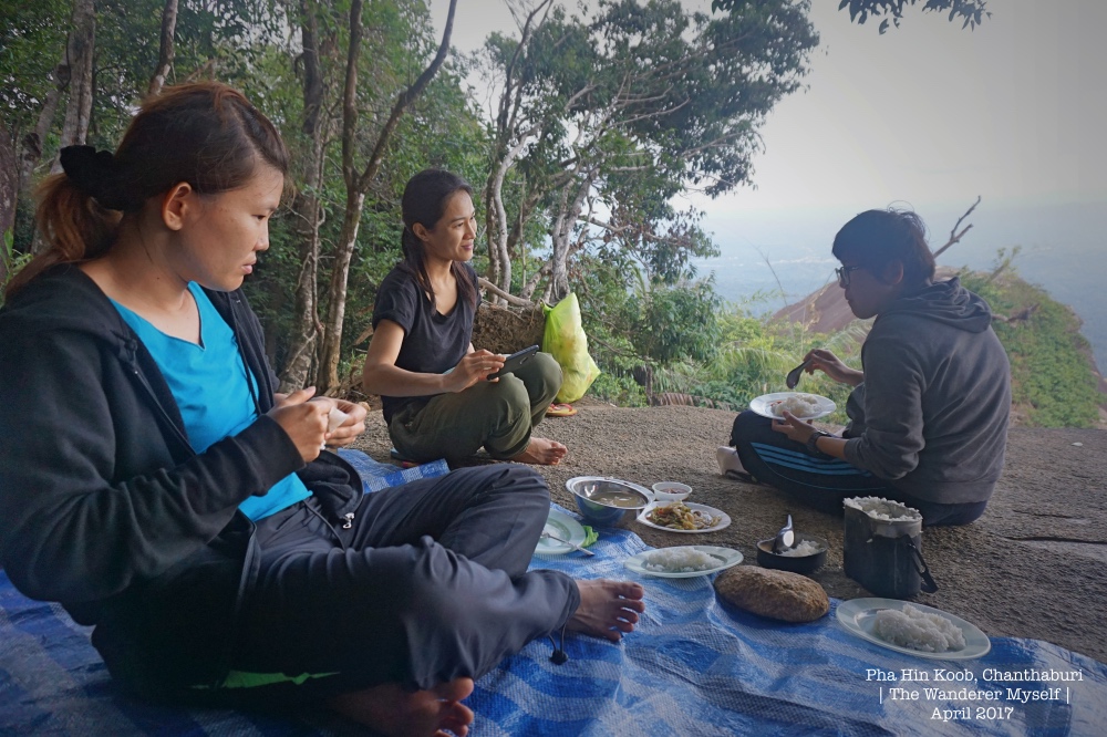 > โอ้วววววววววววว กับสิ่งที่เห็นตรงหน้า บอกเลยว่าความเหนื่อยที่เพิ่งสัมผัสมาเมื่อนาทีที่แล้ว มันว้าาาาาป ไปปลิดทิ้ง สายลมที่พัดมากระทบแก้ม ทำให้หยดเหงื่อหายสิ้น ทัศนียภาพที่กว้างสุดลูกหูลูกตา ไม่มีขอบเขตจำกัด มันช่างงดงามเหลือเกิน > ฟ้าใส เมฆสวย ต้นไม้ครึ้ม ลมพัดเย็น มีเงินแค่ไหนก็หาซื้อไม่ได้ ถ้าไม่ได้ขึ้นมาเสพด้วยตัวเอง > เมื่อจัดการกับอาหารกลางวันกับบรรยากาศตรงหน้าเสร็จกันเรียบร้อยแล้ว บ้างก็ขอพักเอนกายเพื่อพักสายตา และความเหนื่อยล้าของขาและน่อง