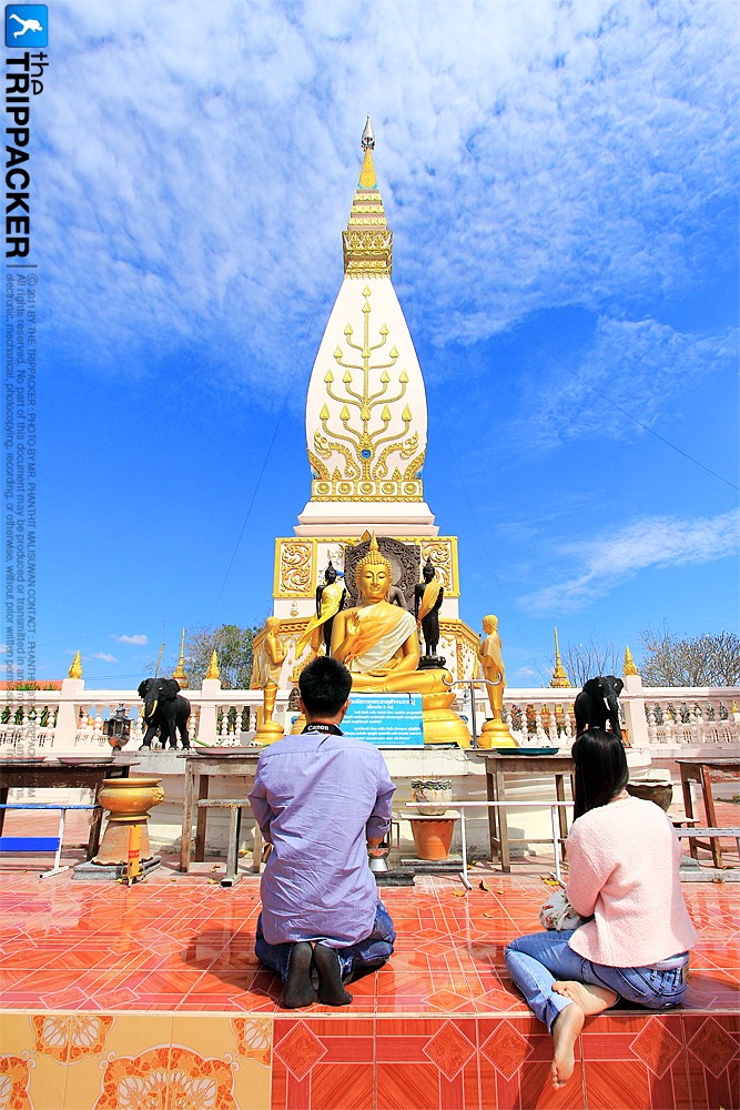At the temple, we were awestruck by the sight of the Naga Serpent on both sides of the stairway to the temple. Each serpent had 7 heads. The serpents are colored from head to tail, making it a favorite photo opportunity. As you climb up the laterite stair, you will meet with the beautiful "Phra That Satcha" or the relic of truth. The relic is 33 meters tall, with an octagon 17 meters wide. The royal seven-tiered umbrellas at the top decorate the relic.