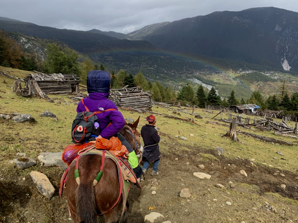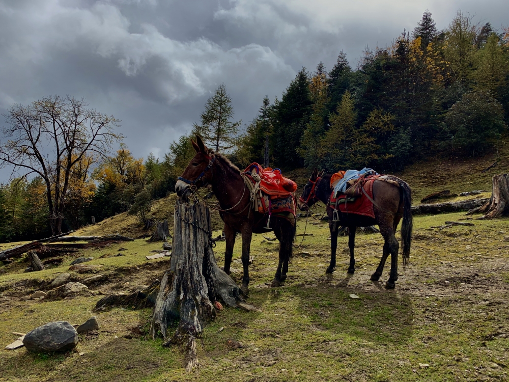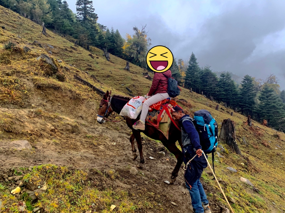 สวยจริง สวยจัง สวยมากๆ เนาะ เดินไปชมวิวไป พักถ่ายรูปให้หายเหนื่อย สักพักลุงไกด์ก็ตามมาทัน พอลุงมาถึงก็ไม่รอช้า ให้เราขึ้นขี่ม้า แล้วก็ออกเดินทางกันต่อ ต่อจากนี้ไม่มีการพักแล้ว มุ่งหน้าตรงไปยัง Base camp เลย ถึงตอนนี้เรายังชิลๆอยู่นะ ก็เพราะว่าอยู่บนหลังท่านขุนไง ไม่งั้นนะหอบรับประทานแล้ว ฮ๋าๆๆ ยิ่งขึ้นสูงเท่าไร ฝนก็ยิ่งตกหนัก แถมไม่พอ อากาศด้านบนหนาวมาก เราหนาวมาก สั่นไปทั้งตัวเลย แล้วหลังจากที่เดินทางมาทั้งวัน เราก็มาถึง Base camp กันแล้วววว
