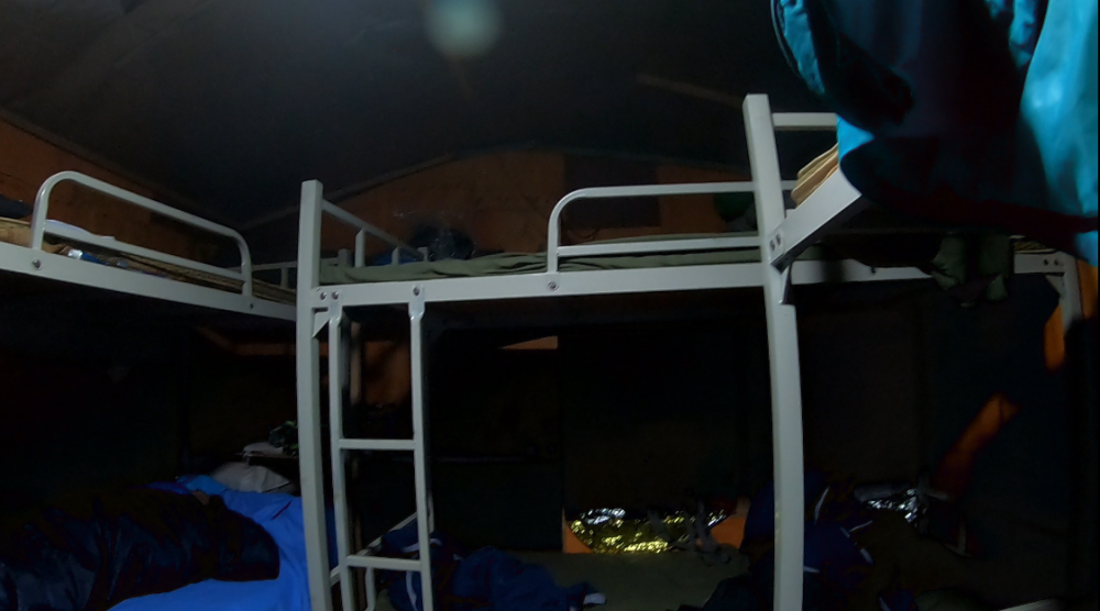 ส่วนที่นอนของเราอยู่ในห้องถัดไปจากห้องครัว พอเข้าไปข้างในจะเจอเตียง 2 ชั้น 4 เตียง บนเตียงมีฟูกแบนๆวางอยู่ พร้อมกับถุงนอน ห้องนี้จะเป็นที่นอนของเรา พี่ปุ๋ย แล้วก็ลุงเกาหลี สามคนเลือกนอนชั้นล่างกันหมดเลย เพราะขี้เกียจปีนไง ฮ่าๆๆๆ เราเอาถุงนอนของเตียงอื่นมาซ้อนกัน 2 ชั้นบวกของเราที่เตรียมไปเองอีกชั้น คิดว่าน่าจะอุ่นแล้วนะ ฮ่าๆๆ แล้วก็ใส่เสื้อเบส x1 เสื้อยืดx2 เสื้อฟรีส x1 เสื้อดาวน์x1 หมวก x2 ถุงมือ x1 กางเกงเบสx1 กางเกง Heattech ของ Uniqlo x1 กางเกง Trekking ธรรมดาๆ x1 ถุงเท้าแบบหนา x2 ถุงเท้าสำหรับใส่นอนx1 หมดกระเป๋าแล้วจ้า แล้วเราก็เอาตัวเองเข้าไปอยู่ในถุงนอนที่เตรียมไว้ แรกๆ จากที่อยู่ด้านนอกนานๆ อาการหนาวมันยังค้างอยู่ ร่างกายยังไม่ได้ปรับอุณหภูมิขึ้น เรานอนแบบหนาวสั่นไปทั้งตัวเลย แล้วหัวใจก็เต้นแรงเพราะอากาศน้อยอีก รัวเป็นกลองแต๊กตอนสวนสนามเลย นอนไม่หลับเลย อาการแบบนี้ AMS แน่นอนเลย เราเลยลุกขึ้นมานั่ง ตั้งสติ ช่วยไม่ได้ วิธีเดียวที่จะช่วยตัวเองได้คือ กินน้ำ โชคดีที่ก่อนมานอนเติมน้ำมาด้วย น้ำร้อนมากๆด้วย เราจิิบน้ำ แล้วก็ล้มตัวนอนอีกครั้ง อาการหนาวดีขึ้นร่างกายคงปรับอุณหภูมิได้ระดับนึงแล้ว สั่นน้อยลง ทำให้เราได้งีบบ้าง ฟังเสียงรัวของหัวใจแล้วก็เผลอหลับไป หลับแบบหลับๆตื่นๆนะ เพราะต้องตื่นมากินน้ำ ถ้าไม่ได้น้ำเราแย่แน่ๆเลย