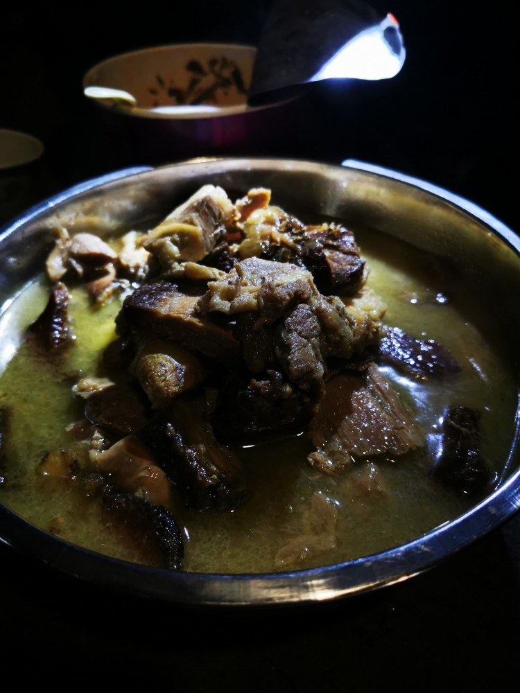 ด้วยความที่กินน้ำเยอะมาก เราก็ปวดฉี่ อยากไปห้องน้ำ ดีนะที่แคปหน้าจอคำว่าห้องน้ำที่แปลเป็นภาษาจีนไว้ หนึ่งในนั้นเขาก็ชี้ออกมาทางด้านหลังกระท่อม เราก็ออกมาพร้อมพี่ปุ๋ย พอเดินออกมา ไหนวะห้องน้ำอ่ะ ไม่เห็นมีเลย พี่ปุ๋ยแกเลยแปลต่อให้ว่า ตรงไหนก็ได้ ตามชอบเลย แถวนี้แหละ ฮ่าๆๆๆ เอาวะแบบนี้เราก็เคยทำที่ไทย เราเลยเดินออกไปไกลหน่อย แต่ว่าลักษณะพื้นที่คือเป็นต้นสน ต้นไม้ไม่ใหญ่เลย บังเราไม่มิดว่าง่ายๆ แล้วหญ้าที่พื้นก็ไม่สูงเหมือนป่าบ้านเรา ทีนี้เราก็เขินไง โชคดีที่หมอกลงหนามากๆ เลยตัดสินใจจัดการปลดปล่อยในทำเลที่คิดว่าดีที่สุดแล้ว อยากจะบอกว่ามันเย็นมากค่ะ ฮ่าๆๆๆ อากาศก็เย็น หมอกก็เย็น มีลมด้วยอ่อนๆ เย็นแค่ไหนคิดดูสิ ฉี่ที่ออกมามีควันออกมาด้วยเลยอ่ะ