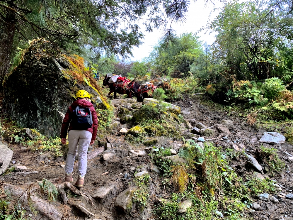 แล้วทางชันก็มาถึง โอ้ย เหนื่อยมาก จากหมู่บ้านเดินจนมาถึงจุดที่เป็นทางขึ้นเขาความสูงน่าจะไม่ต่างกันมาก 2700 เมตรจากระดับน้ำทะเลปานกลาง ทำเอามนุษย์ระดับ 0 เมตรอย่างเรา เหนื่อยมากๆ เราหายใจแรง แล้วก็หัวใจเต้นแรง นี่ถ้าลุงไกด์ไม่ให้ขึ้นม้า เราคงได้นอนกลางทางแน่ๆ