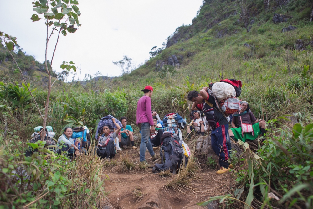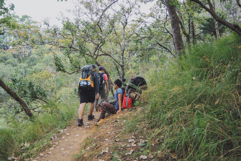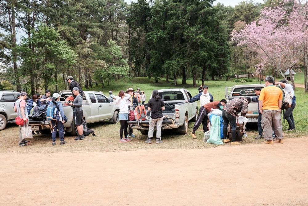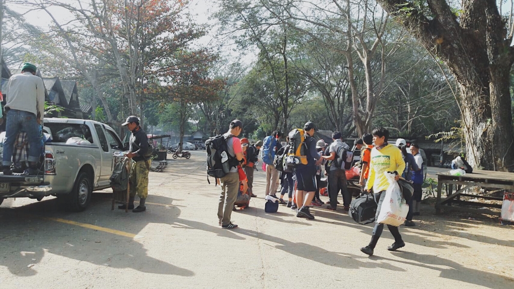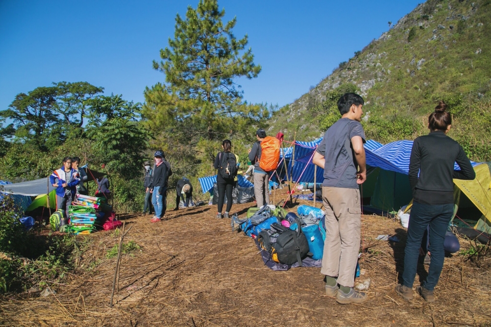หลังจากที่เจอกับพี่ๆ แล้ว เราก็จัดสัมภาระของตัวเอง อันไหนที่จะให้ลูกหาบก็แยกไว้ ที่เหลือก็จัดการขึ้นเป้
