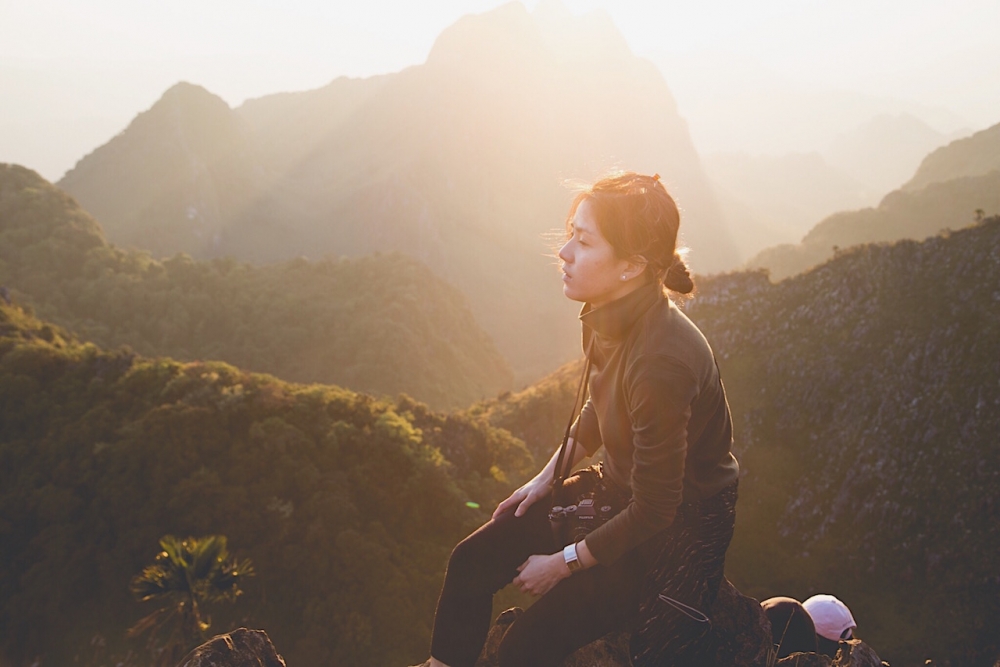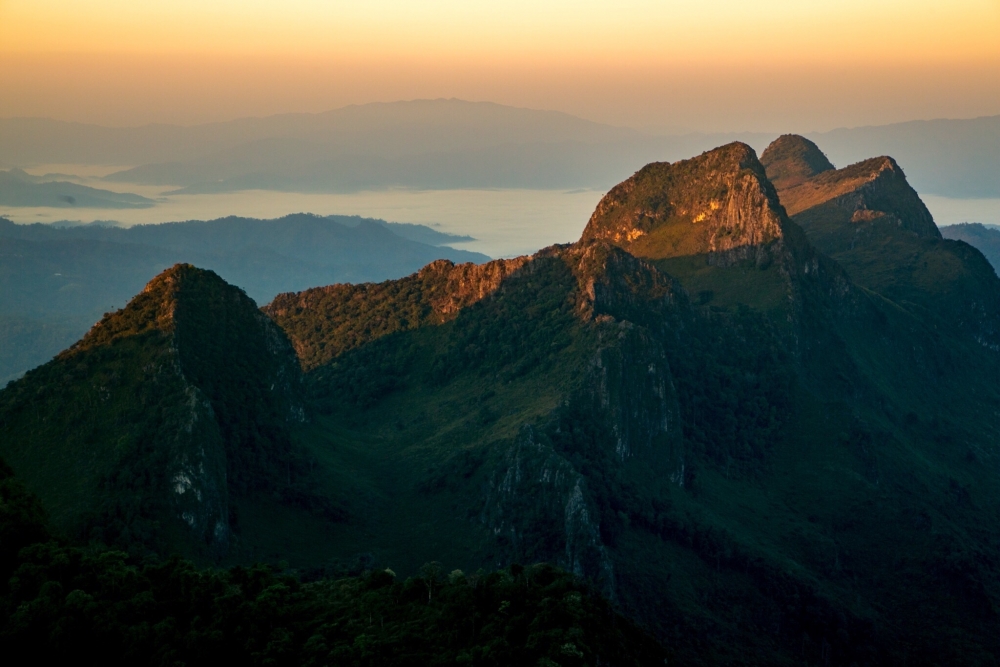 เดินขึ้นไปถึงยอดก็เริ่มมีแสงส้มๆ ออกมาแล้ว