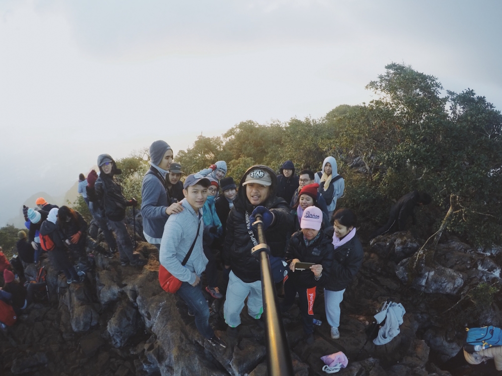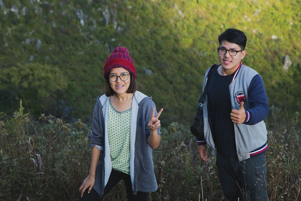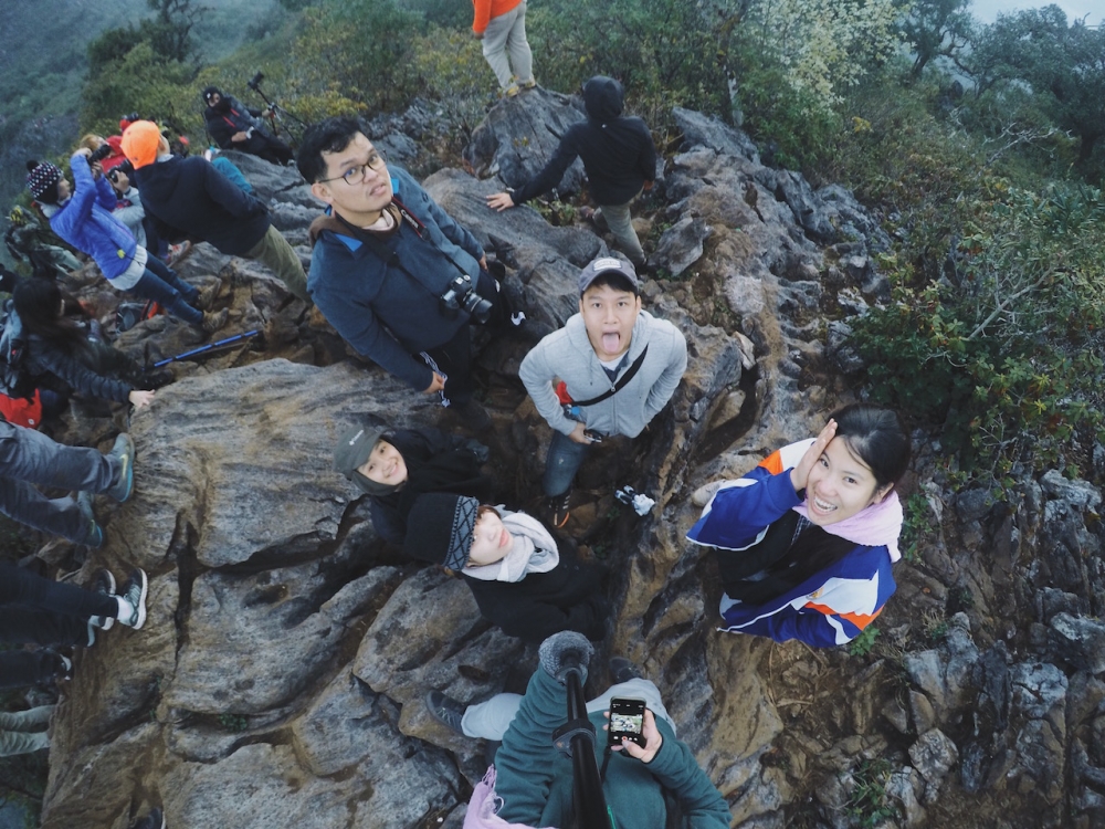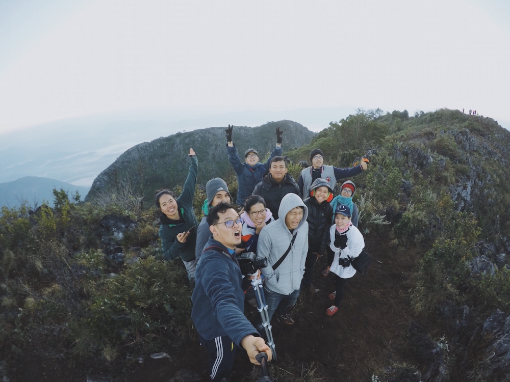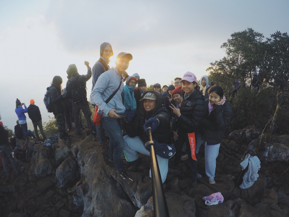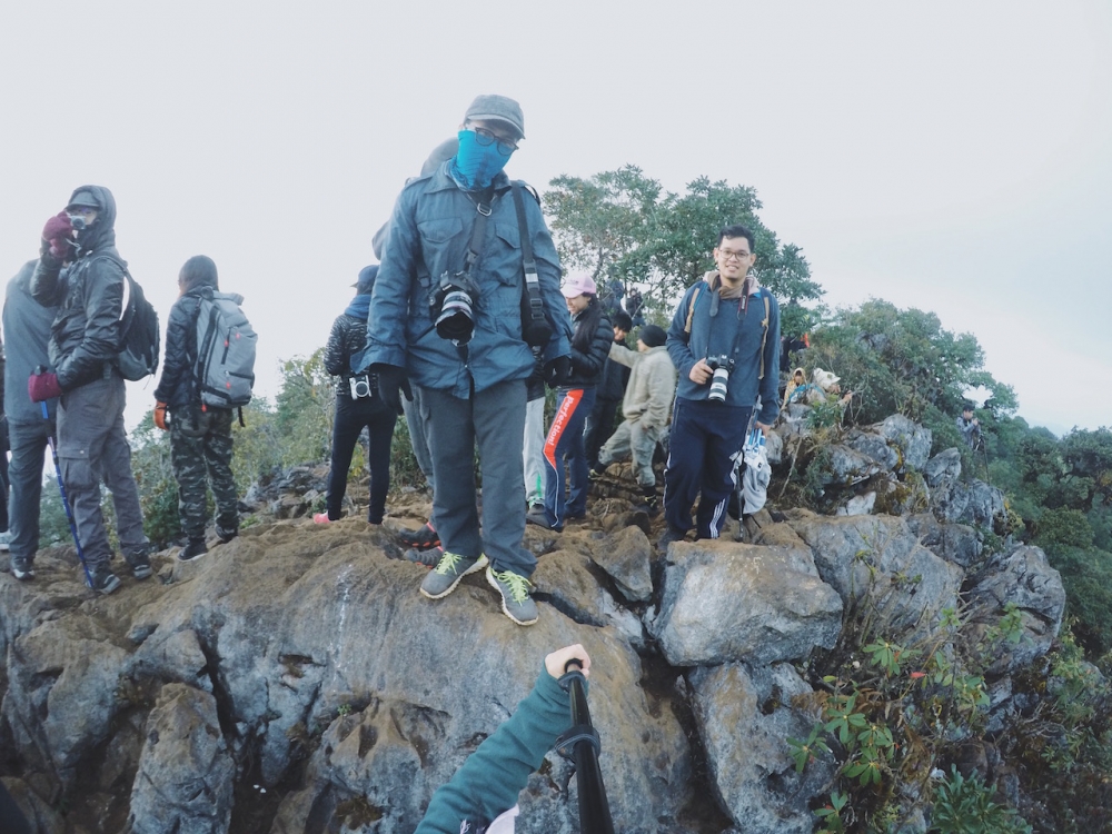 ทะเลหมอกมีให้เห็นบ้าง แต่ก็ไม่มาก ก่อนจะเดินกลับพวกเราก็ถ่ายรูปเล่นกันก่อน