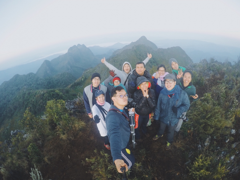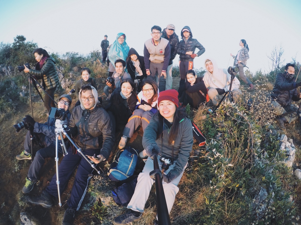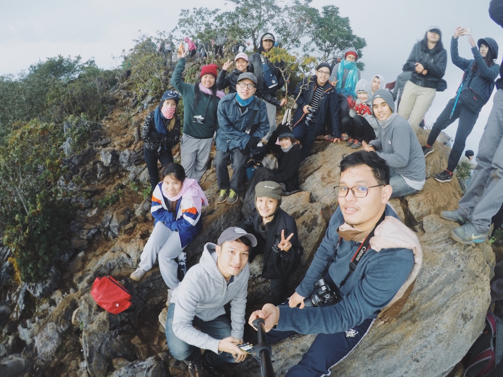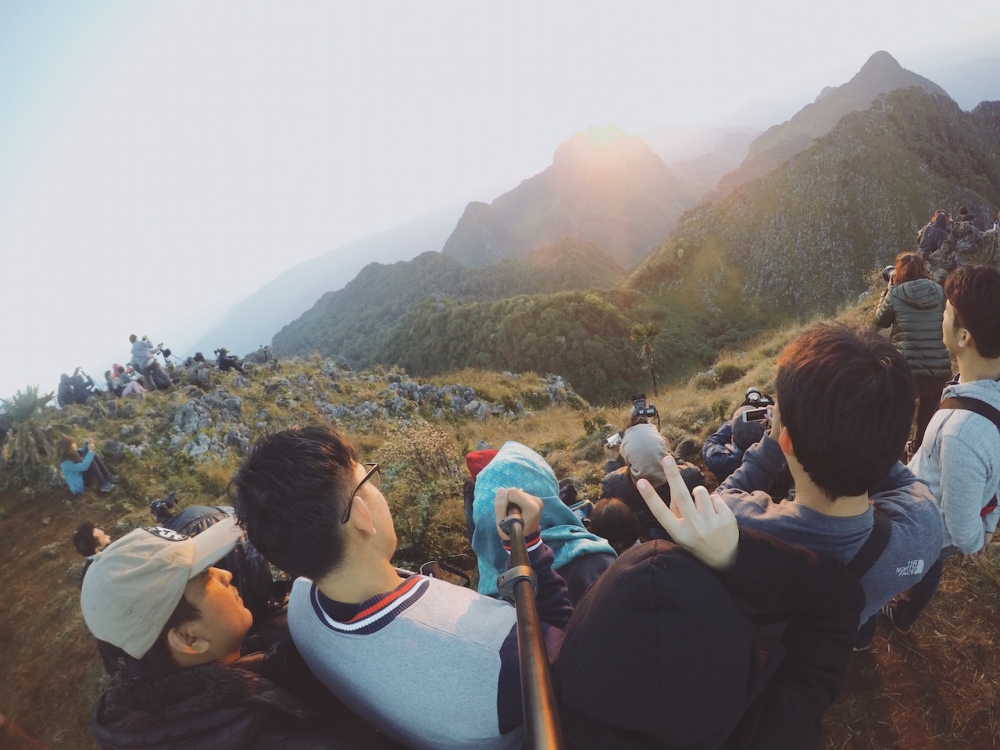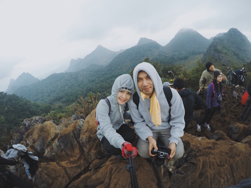 ทะเลหมอกมีให้เห็นบ้าง แต่ก็ไม่มาก ก่อนจะเดินกลับพวกเราก็ถ่ายรูปเล่นกันก่อน