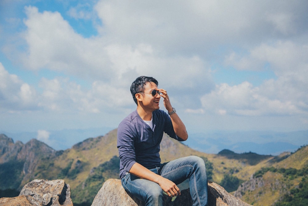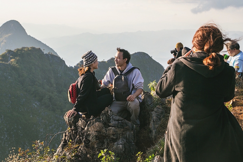 ลมข้างบนนี้แรงนะครับ พระอาทิตย์ยังไม่ตกดีเลย ต้องรีบเอาเสื้อกันหนาวออกมาใส่แล้ว