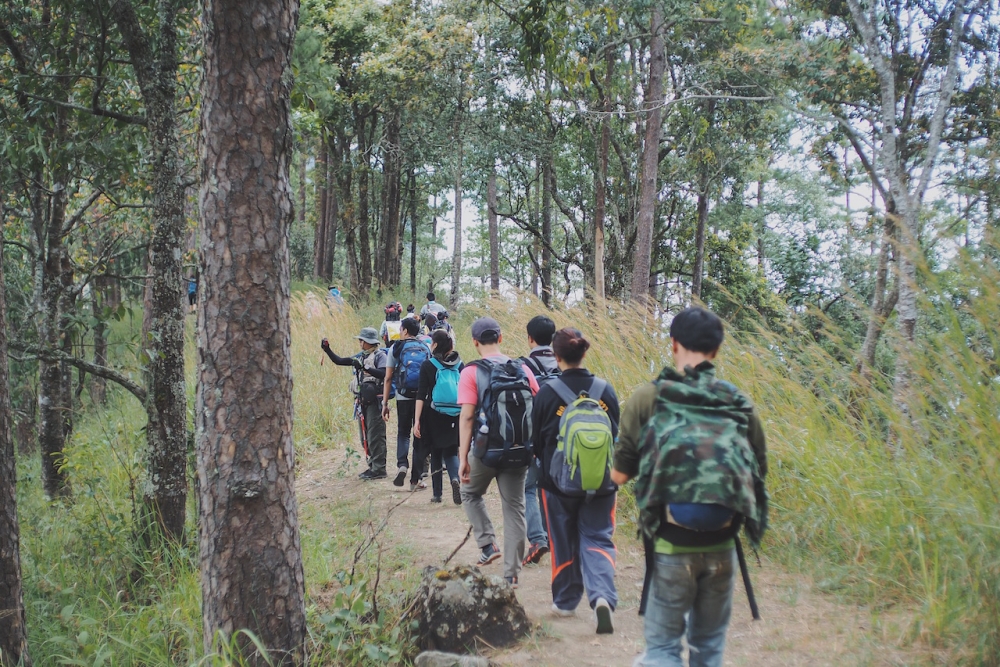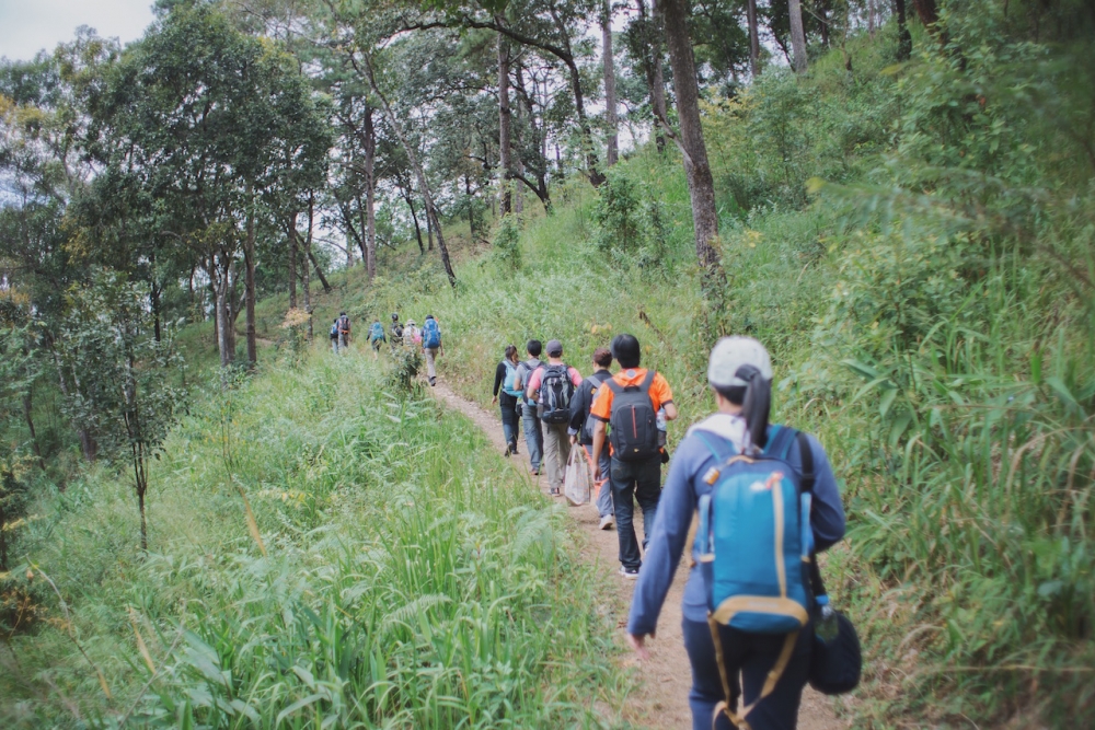 ถ่ายรูปเสร็จก็ออกเดินอย่างจริงจังและ ช่วงแรกๆ ของการเดิน ก็เดินเรียงแถวกันเป็นขบวนรถไฟเลย