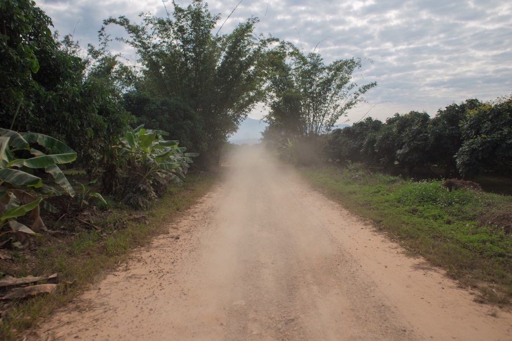 ถนนนี่มีตั้งแต่คอนกรีตธรรมดา ลูกรัง ไปจนถึงหลุมอุกาบาต โยกไปก็โยกมา แถมฝุ่นตลบตลอดทาง