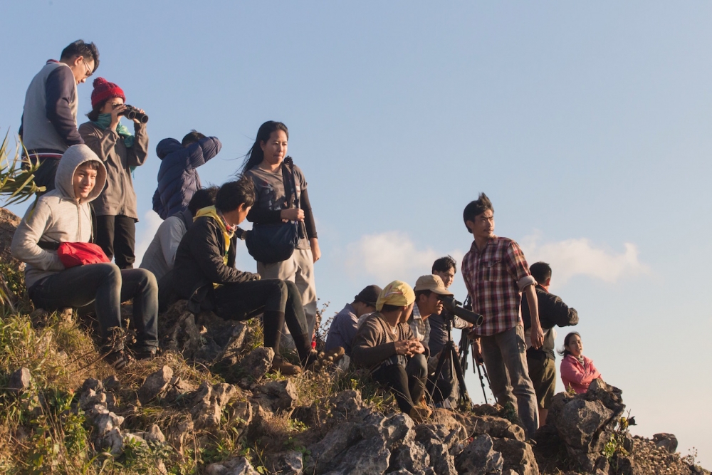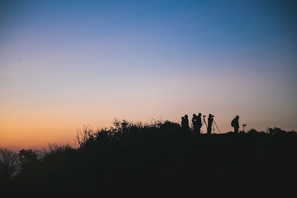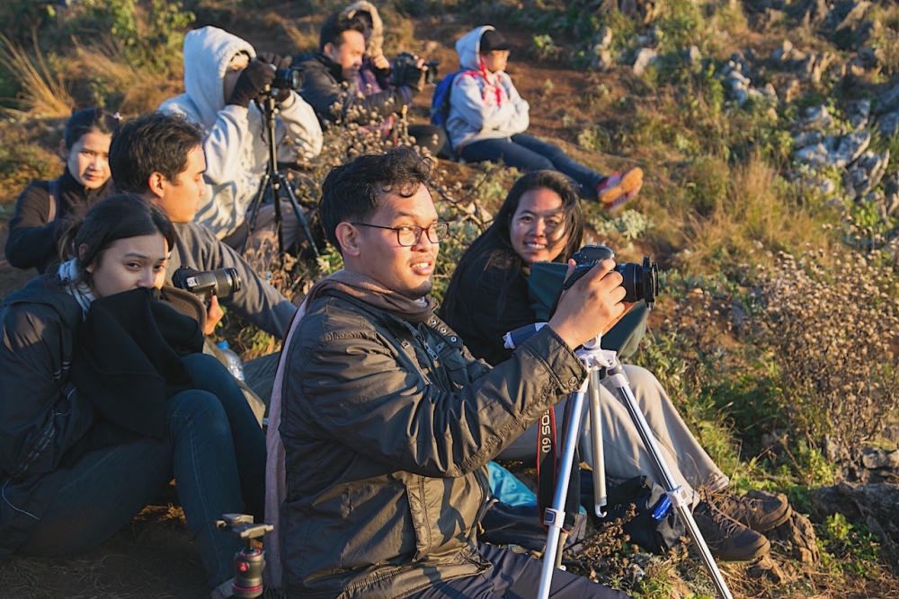 ถึงแล้วก็จับจองหาที่นั่ง กางขาตั้งกล้องรอพระอาทิตย์กันได้เลย