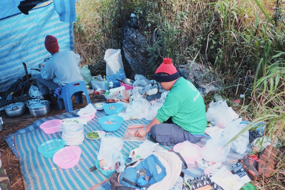 พี่ๆ ลูกหาบเป็นคนเตรียมอาหารให้เราทุกมื้อ เรามีหน้าที่แค่กิน แล้วก็ขอเพิ่ม 555