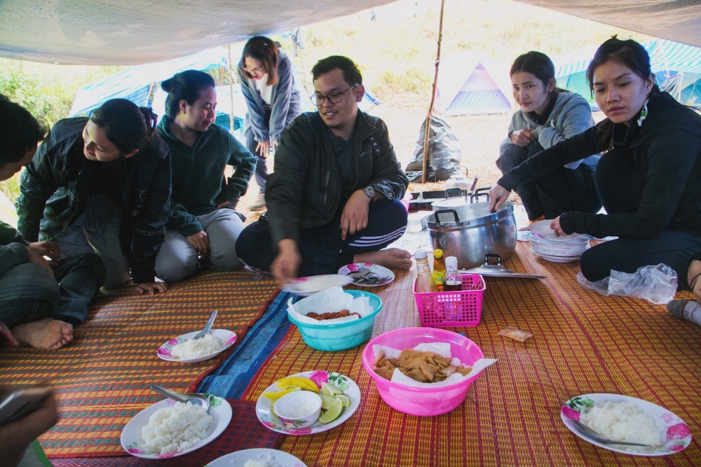 ถ่ายรูปกันเสร็จ แดดก็เริ่มแรงขึ้นเรื่อยๆ พวกเราก็เดินกลับลงมาที่เต็นท์ ข้าวเช้ารอเราอยู่