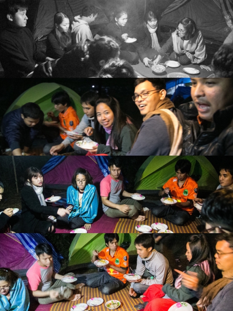 แล้วพวกเค้าก็ลงกันมาถึงเต็นท์ ก็มืดพอดี ได้เวลาอาหารเย็นที่เรารอคอยกันสักที